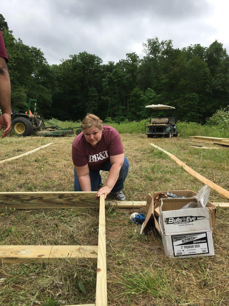 Irvine hosts dozens of camp outs each year, between grant-funded camping, Summer Nature Camp, and school and scout programs. Additionally, our campsite can be rented by the public. With only one campsite, we were running low on room – in came the Lighthouse Project! After a generous donation from BB&T, Irvine purchased the necessary supplies to build a platform in our back meadow. This new feature will provide additional camping space and encourage exploration further out onto the property.