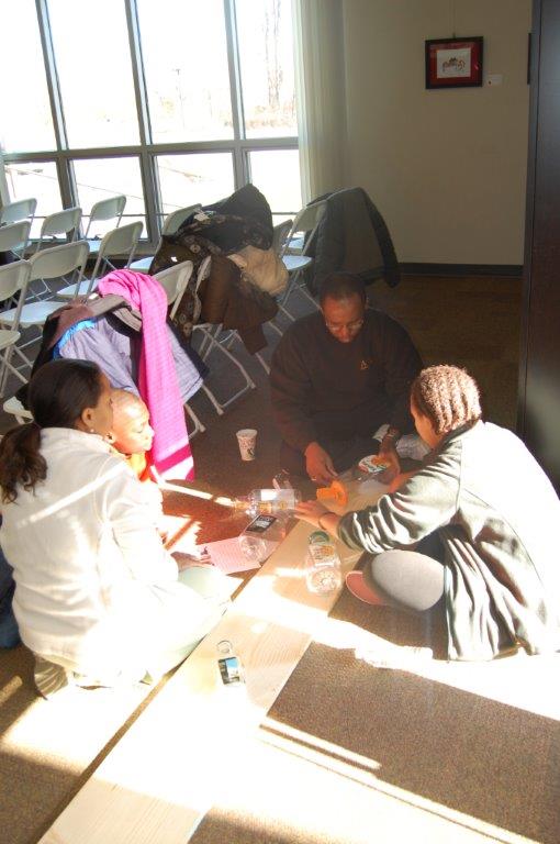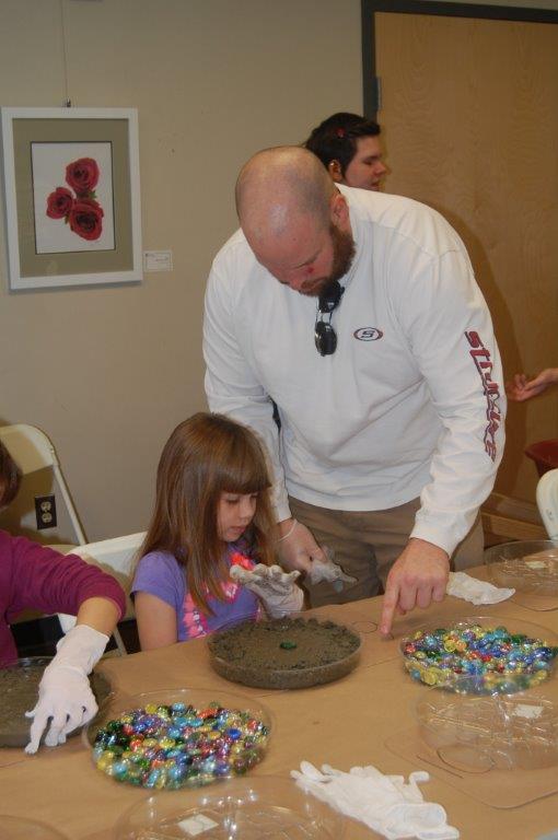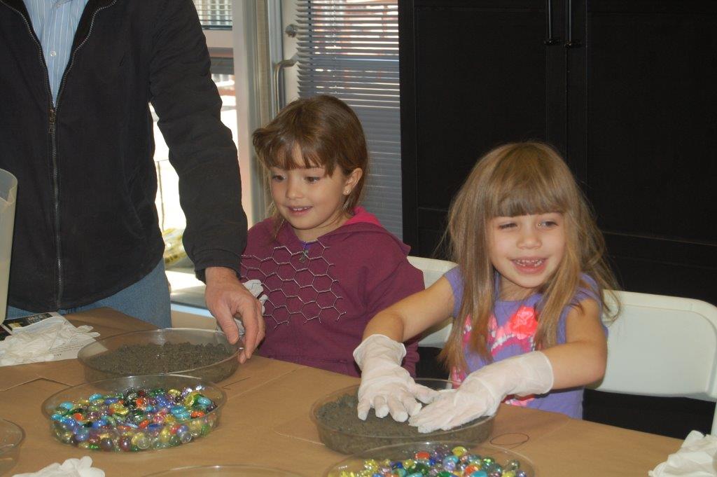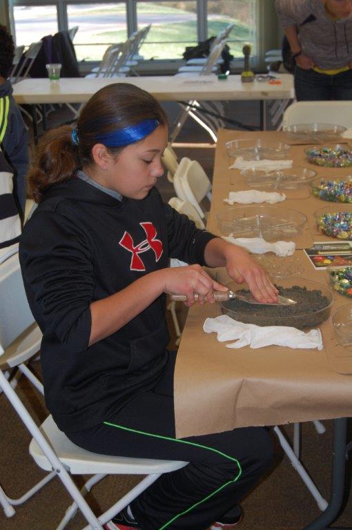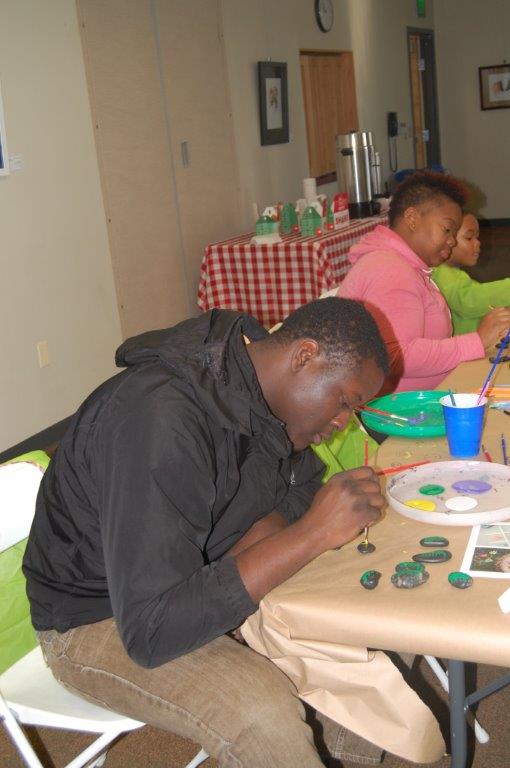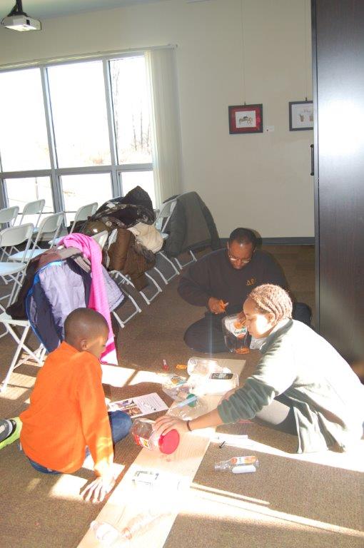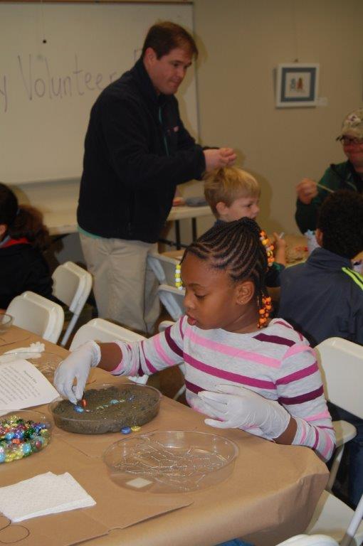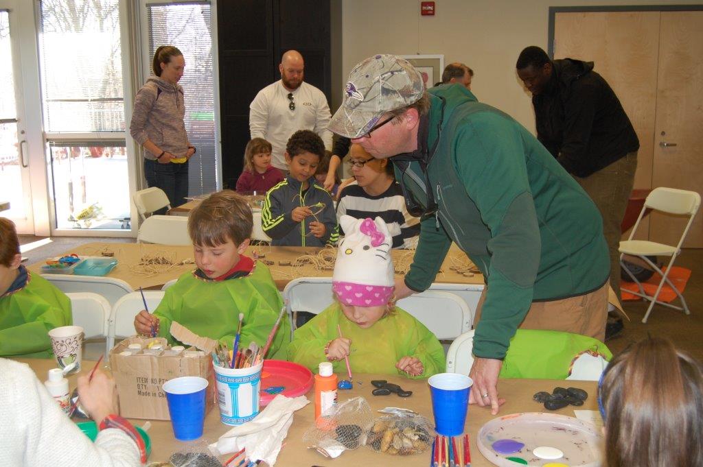 On Saturday, November 22nd, 2014 families came out to Irvine Nature Center to celebrate National Family Volunteer Day. Volunteers made new hopscotch tiles for Irvine’s Outdoor Classroom, decorated tic-tac-toe rocks for our Kids Corner and future Family Game Nights, strung tree cookie necklaces for Nature Birthday Parties and constructed a Recycled Bottle Water Play Board for our Preschool!