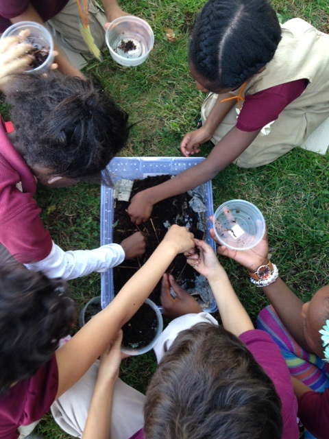 The green club has worked toward many different Best Management Practices during the first few months of school, including certifying a Monarch Way Station and learning about migration, composting, mulching, and soil composition. Certifying to become a Monarch Way Station involved the students surveying the schoolyard to find out what types of host and nectar plants were around for monarchs. We played a migration game to show the struggles that monarchs face during their long travel to Mexico.