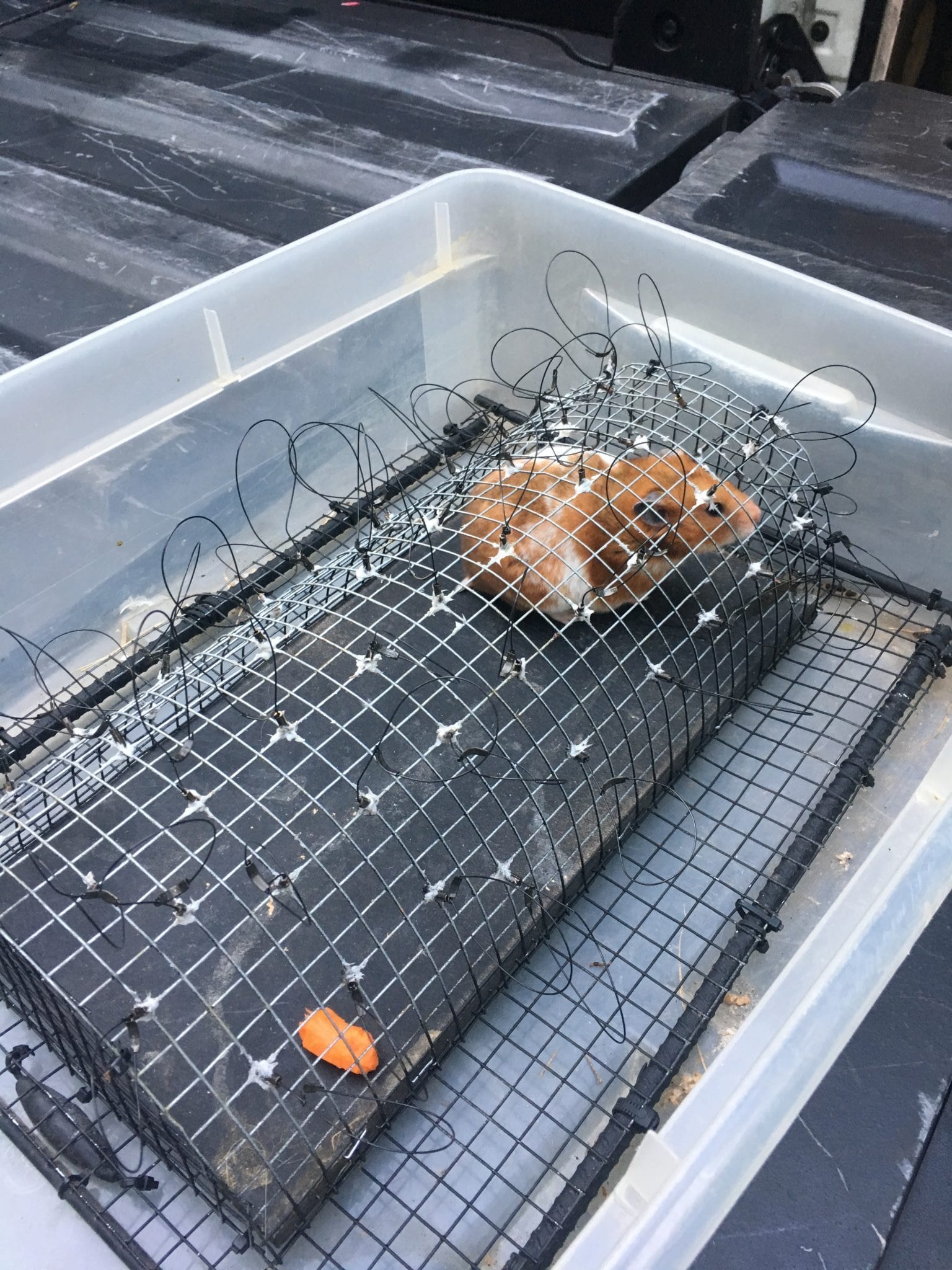 Fifth Step: Trap Your Bird. Check. While this step can also take a long time, the process in of itself is a blast! After much debate between a Red Tail and a Kestrel, my heart won out with the Red Tail. Why? I don’t know. I’ve worked with all three of the allowed species of apprentice birds, but I’ve always gravitated towards the Red Tails. So how do you trap a bird? Wait…trap a bird? It’s a wild bird? You are taking a bird from the wild?! Okay, let me explain. Falconry and falconers take conservation to heart. Same way that ethical hunters do as well. You are only allowed to take a passage bird from the wild. A passage bird is a juvenile bird that is on its first winter. For Red-Tails, this means they don’t have their red tail feathers in yet! The statistics are terrifying…close to 90% of juvenile birds of prey do not survive their first winter. In a different perspective, if a pair of raptors laid three eggs and all of them hatched, only one would make it through the first year. As a falconer, you are trapping one of the other two that would have perished. You aren’t taking a bird from the wild, you are letting another bird live. You are teaching that youngster how to successfully hunt, you are protecting her from predators, from competition, from severe weather. You are allowing that bird to SURVIVE. Many falconers end up releasing their falconry bird in the spring anyways! They get it through the first hard year, hunt with it, and then wish it luck, knowing that they allowed that bird to survive and go on to propagate. Some falconers though, myself included, fall hard for their bird – it will become their lifetime falconry bird. But you know what, that’s okay. It’s a personal choice that a falconer has to make when the time comes. The bird doesn’t need the falconer – the falconer “needs” the bird. The bond you build with the bird is what makes that free spirit return to your glove at the end of the day. If you still have a hard time with this, then maybe falconry isn’t for you. And that’s okay as well. For those that see it in a positive light, trapping is very rewarding and here’s how you do it… The trap in question is called a bal-chatri trap. It is a wire cage that you put live bait in. The bait does not get injured! It is protected from the birds talons inside the wire cage. There are little nooses that stick up from the trap and when the raptor flies in to grab the bait, it’s toes get stuck in the nooses. When I went trapping with Brian and fellow falconer, Tommy, we would use one of my quail that I raised or Tommy’s pet hamster. (That hamster has caught over 5 hawks in her lifetime! She’s a champ!). Driving – driving around for hours a day whenever time would allow…save your gas money for this! Driving and looking for passage birds! Driving back roads, driving the highways, even jumping onto freeways. Driving and looking for passage birds – there’s one? Maybe. Can’t see it’s tail. Is it safe to set the trap out? Safe for us? Safe for the bird? Yes! Throw the trap out of the window! Hurry. Turn around. Wait. Wait for two minutes. Wait for 30 minutes. Depends how hungry the bird is! Wait. After a certain period of waiting, you may get a better look at the bird in questions tail. If you see red, grab the trap, you can’t have her! If you can’t tell, but she’s got her foot tucked up under her, she’s probably an adult and knows better! Grab the trap. If she hits it…wait. Make sure she’s stuck! She’s definitely stuck…drive! Pull-over. Park. Jump out of the truck. Take your shirt off (this is indecent for us ladies, grab a towel instead!), cover the bird’s head. Darkness. Carefully get control of the birds feet and free her from the trap. Look her over. Is she definitely a passage bird? Yes. Do you love her? Yes. Congrats, you have a bird! Do you have a name for her already? Yes – Lady. My Lady was caught right over in Greenspring Valley (seems like it was meant to be…she might have even been hatched over on Irvine’s property!). She was one of the only passage Red-Tails we’ve seen this season. We almost caught what we thought was a passage Red Tail in Fredrick, but he just wouldn’t get stuck on the trap! We also trapped a passage Red Shouldered, who was a real cutie, but not the right bird for me. Trapping is so much fun even if you don’t catch anything! Driving around with your buddies looking for birds – $100 in gas money. Successfully trapping a bird – $50 in trapping supplies. Trapping the right bird – Priceless!