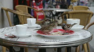 - Sparrows eating in an urban setting
