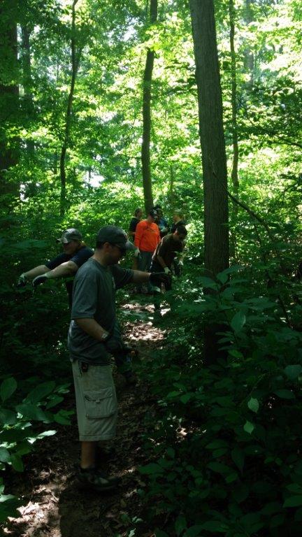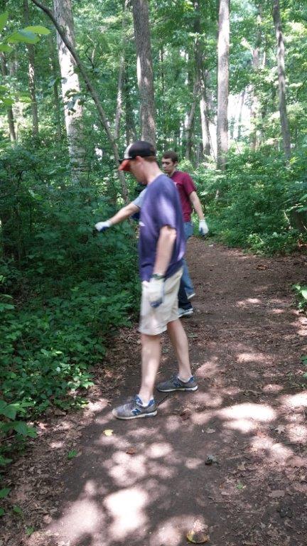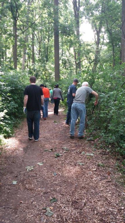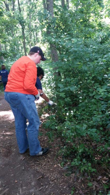The 3rd T. Rowe Price Group of the week did some great trail maintenance work and power washing! They cut back any branches that had started growing into the trail and they pulled out invasive, non-native plants during trail maintenance! Part of the group also helped to clean up the tables and chairs we use for all our events and weddings with the power washer.