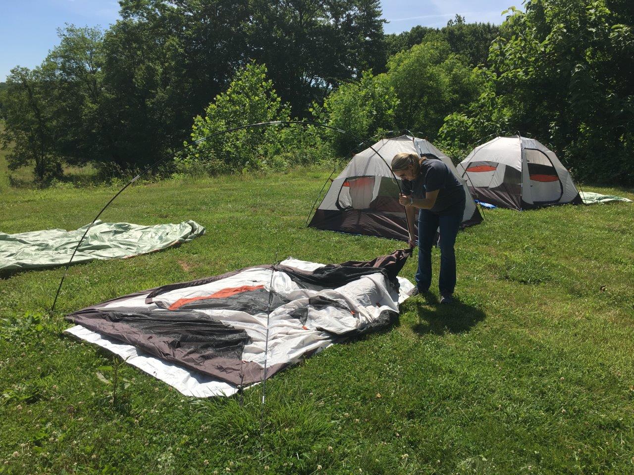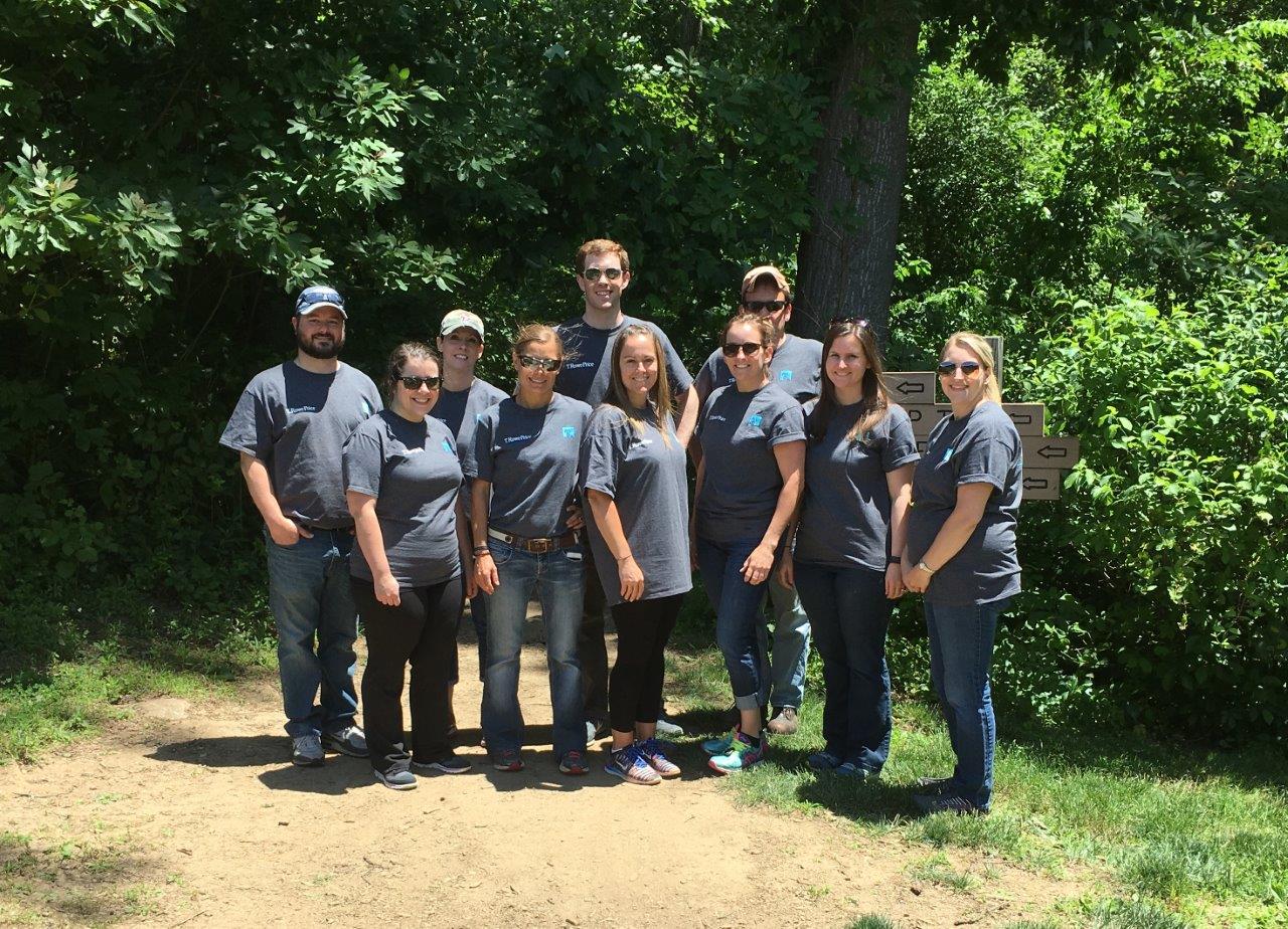 T. Rowe Price, a longtime corporate partner of Irvine (we even have a room named after them!) visits Irvine several times each year to volunteer. This June, 10 employees came out at the perfect time – right between our Endowment Celebration Dinner and Nature Preschool Conference. We had only one day to breakdown from the first event and get everything set up for the NPC starting that evening! The team was up for anything, including rolling 5-foot tables uphill, setting up tents, and setting up many, many tables and chairs for the conference.
