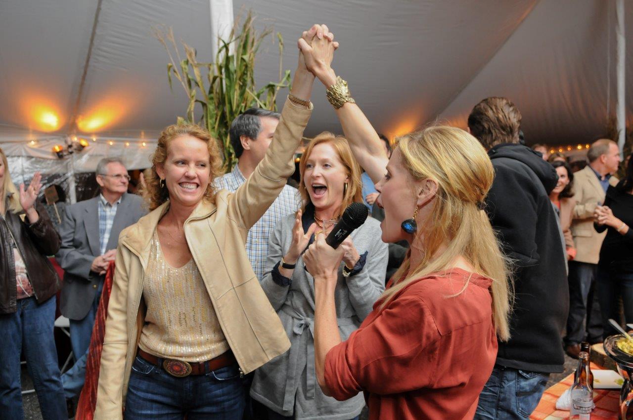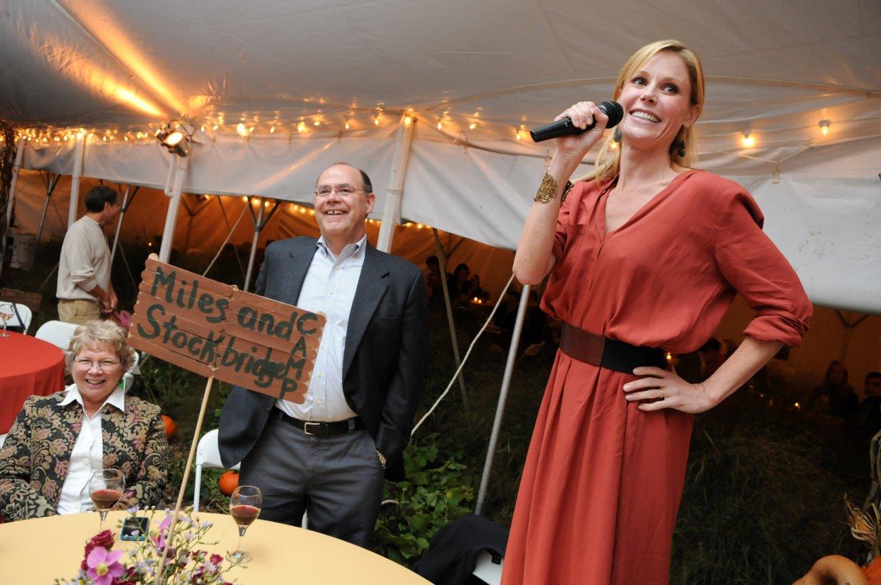 - Julie Bowen encourages the Pumpkins on the Green crowd during the live auction.