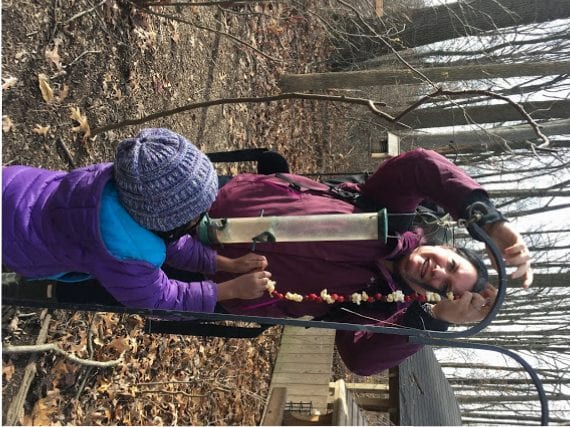 - Stringing snack for the birds
