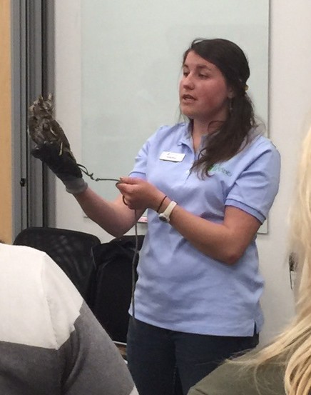 Before the clean-up, Katie Roof, an Irvine Naturalist, gave an animal presentation to WPM employees. Katie explained how different native species, like the Diamondback Terrapin and Eastern Screech Owl, are impacted by pollution.