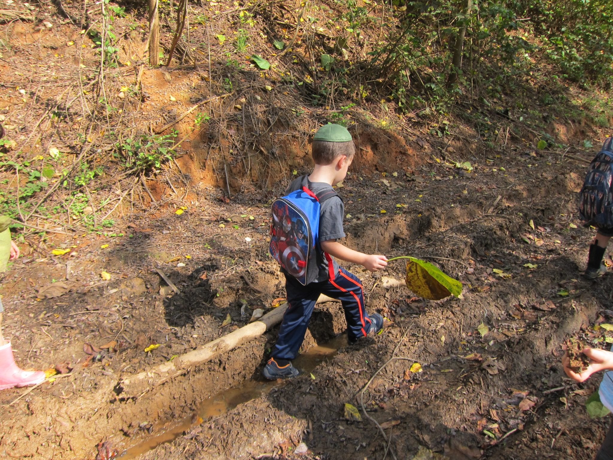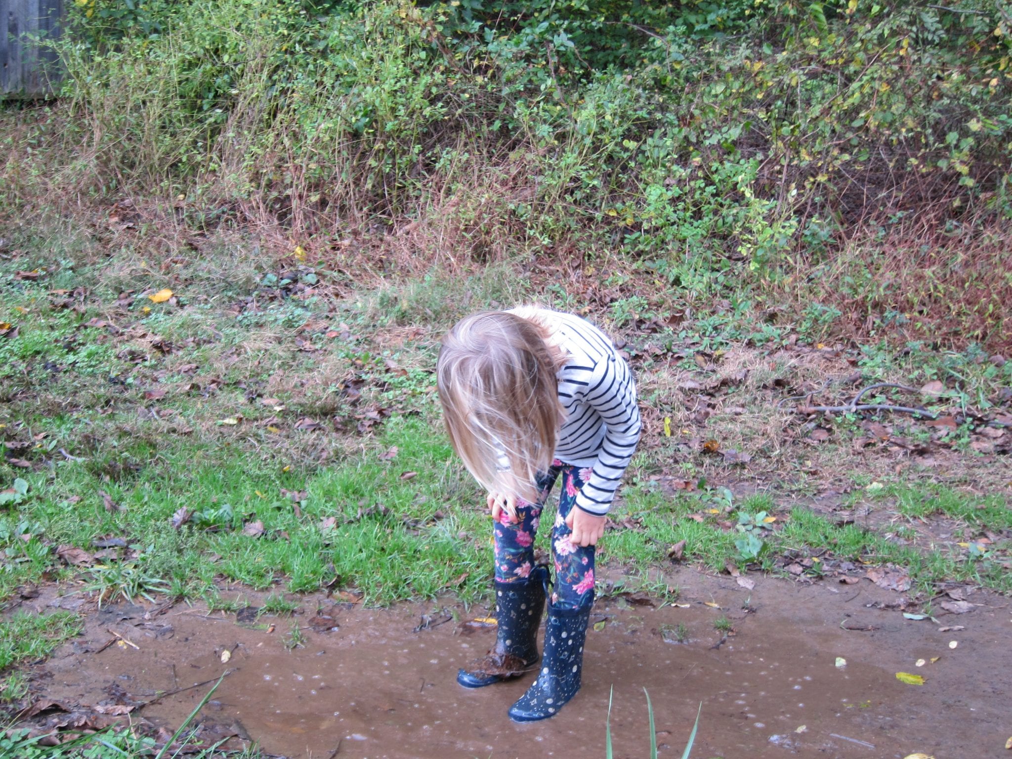 We ended up outside in our favorite frog catching spot! We spent time seeing what kind of ‘plops’ we could make in the water and testing the depth of the water with sticks.