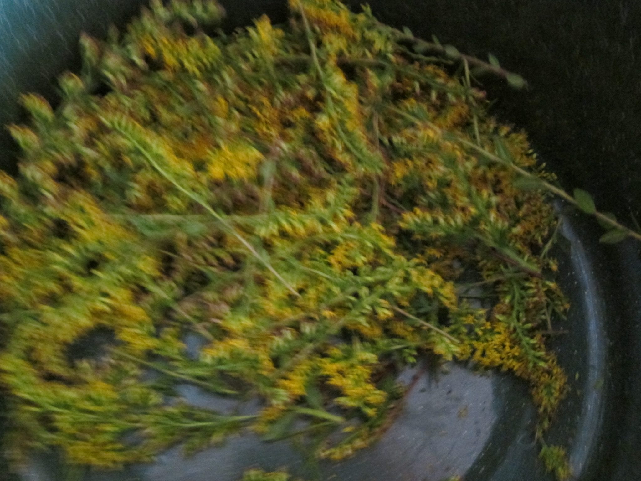 3.) After about 30 minutes, we poured the goldenrod into a mesh bag and squeezed out all of the moisture