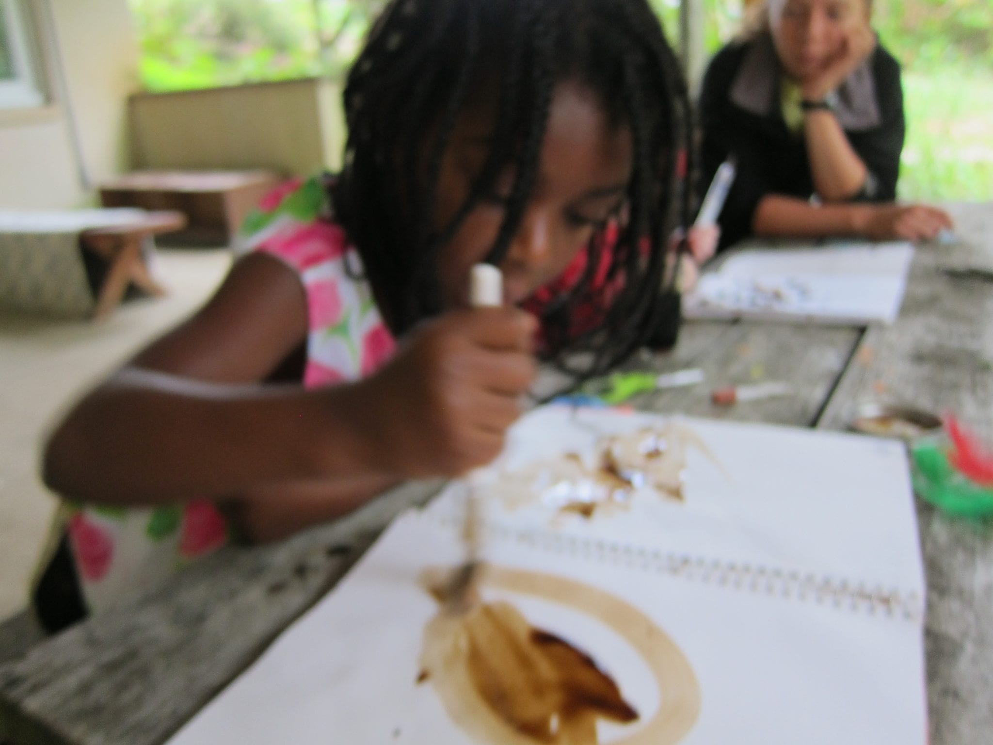 We also got to use our black walnut ink we created last week . We let the ink sit for many days and we all agreed that it was slightly darker after first boil, but not too much of a difference.