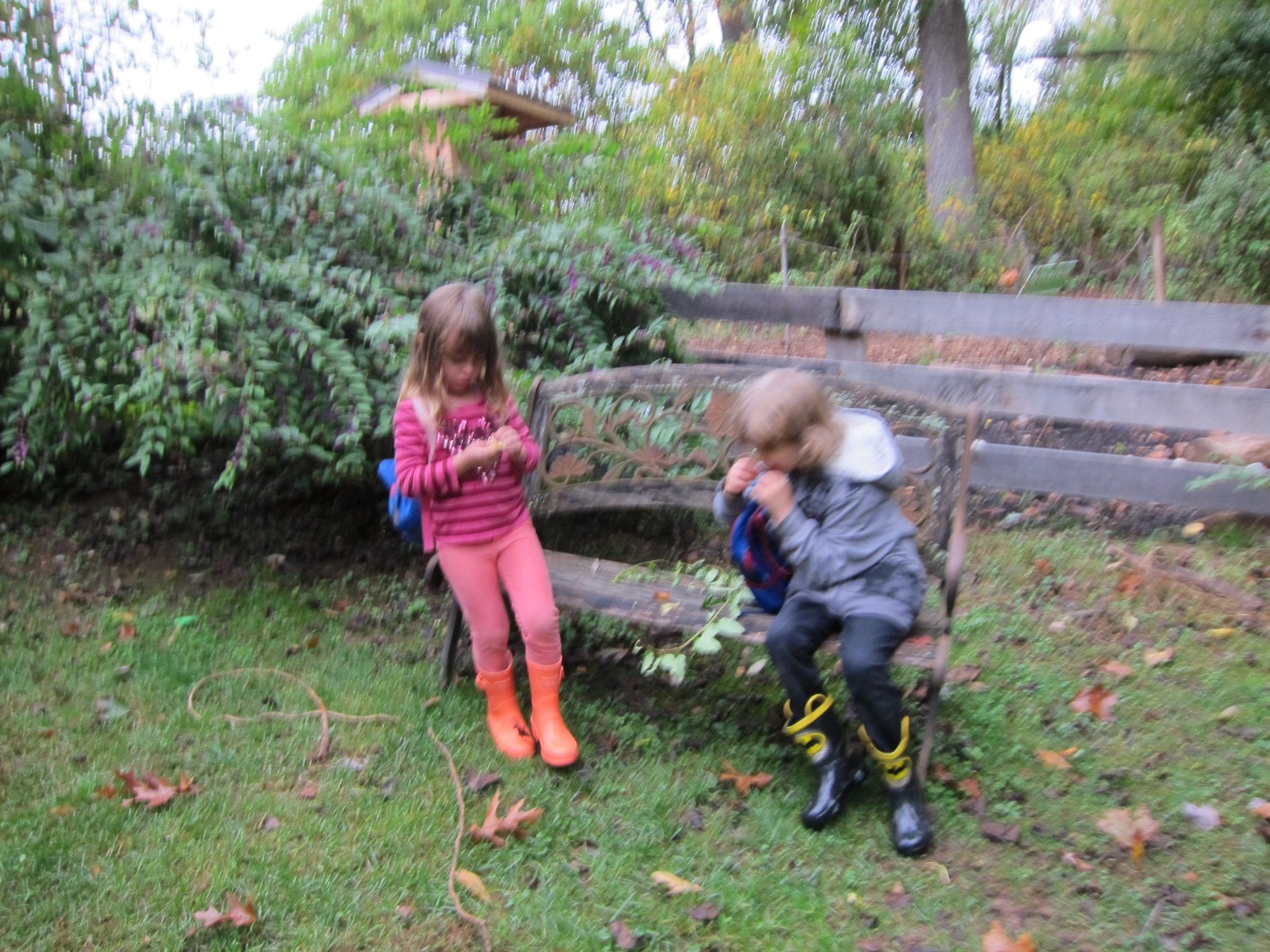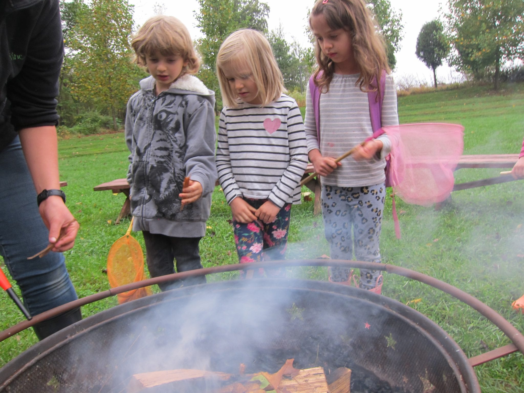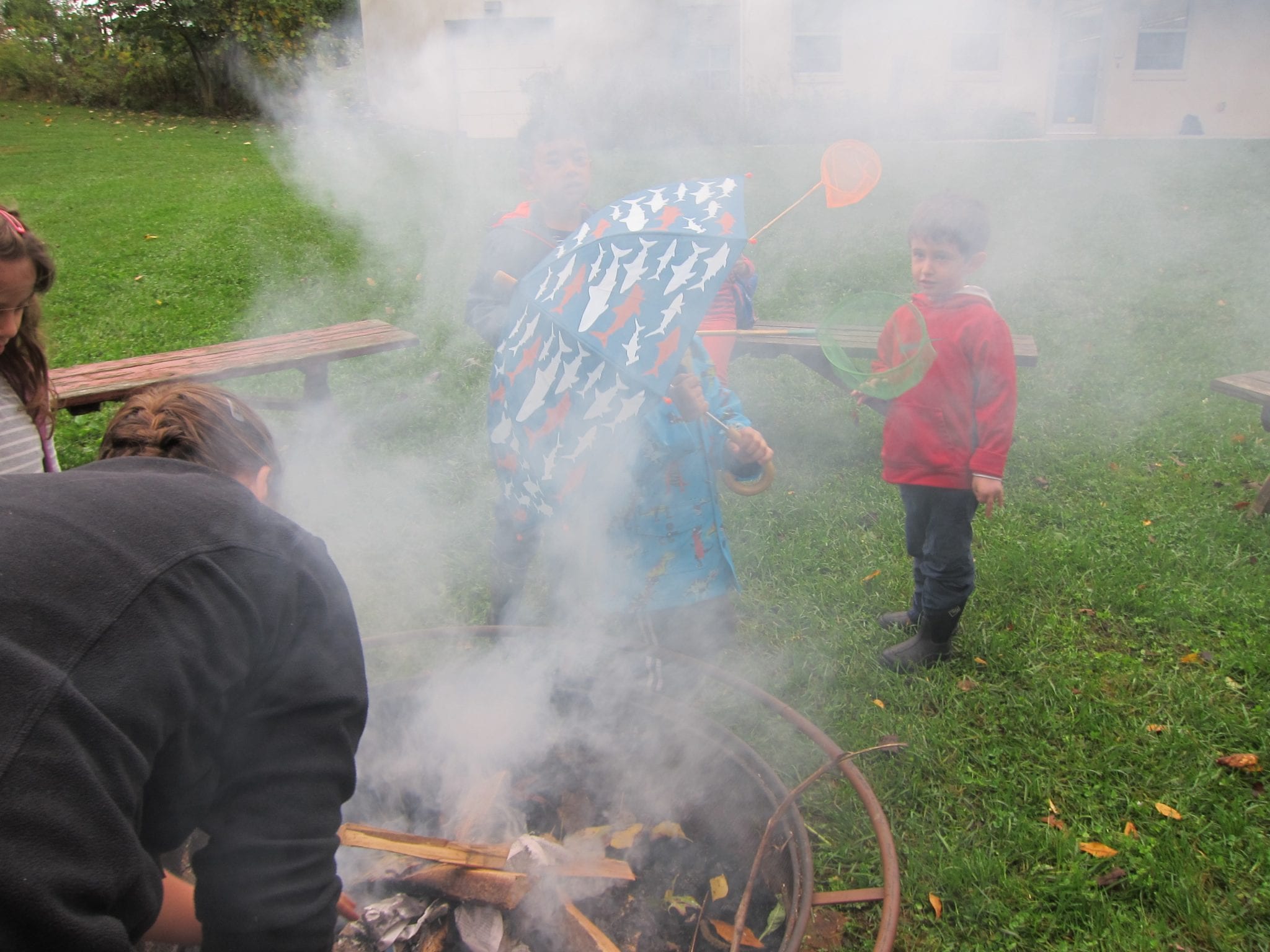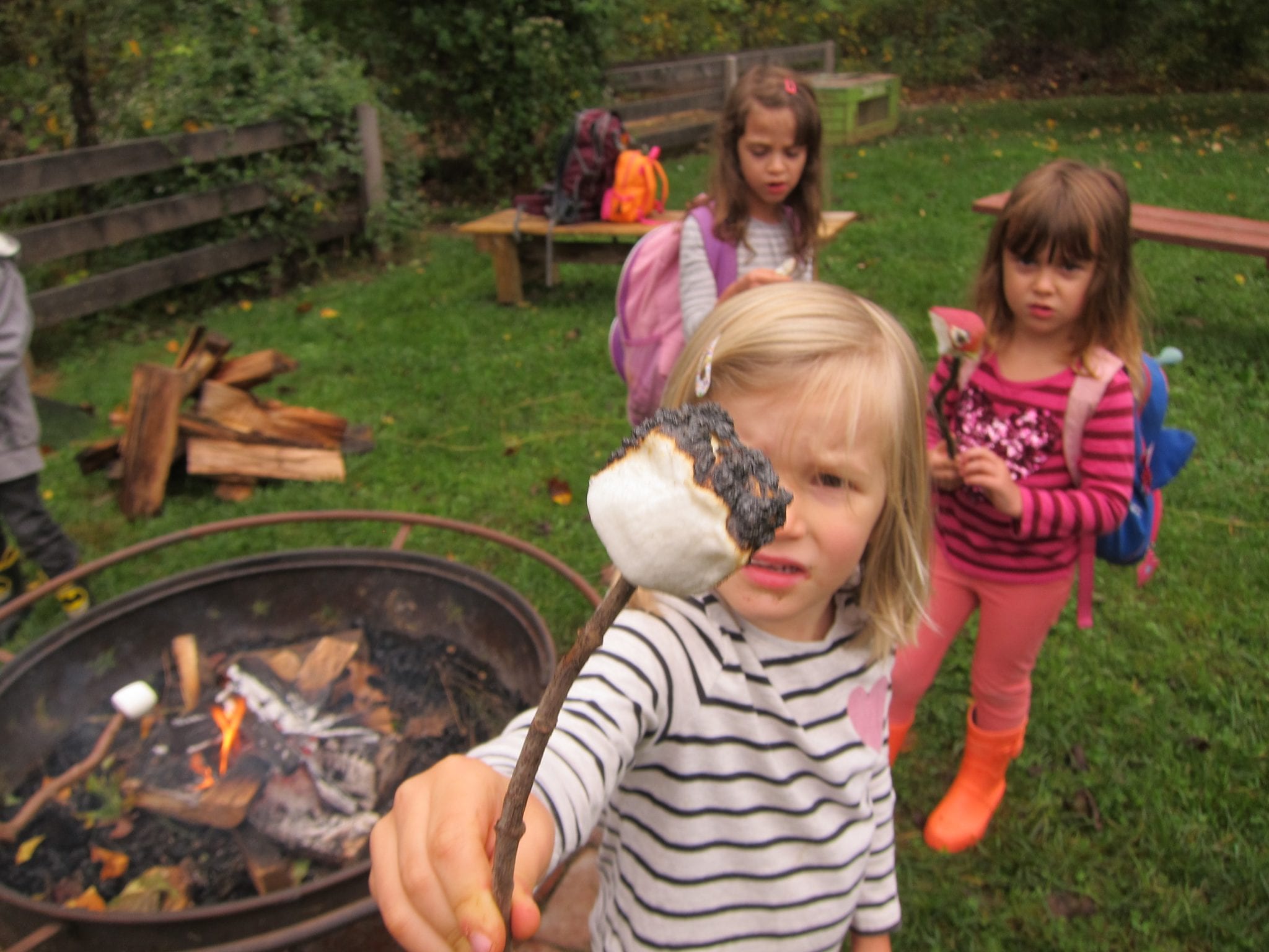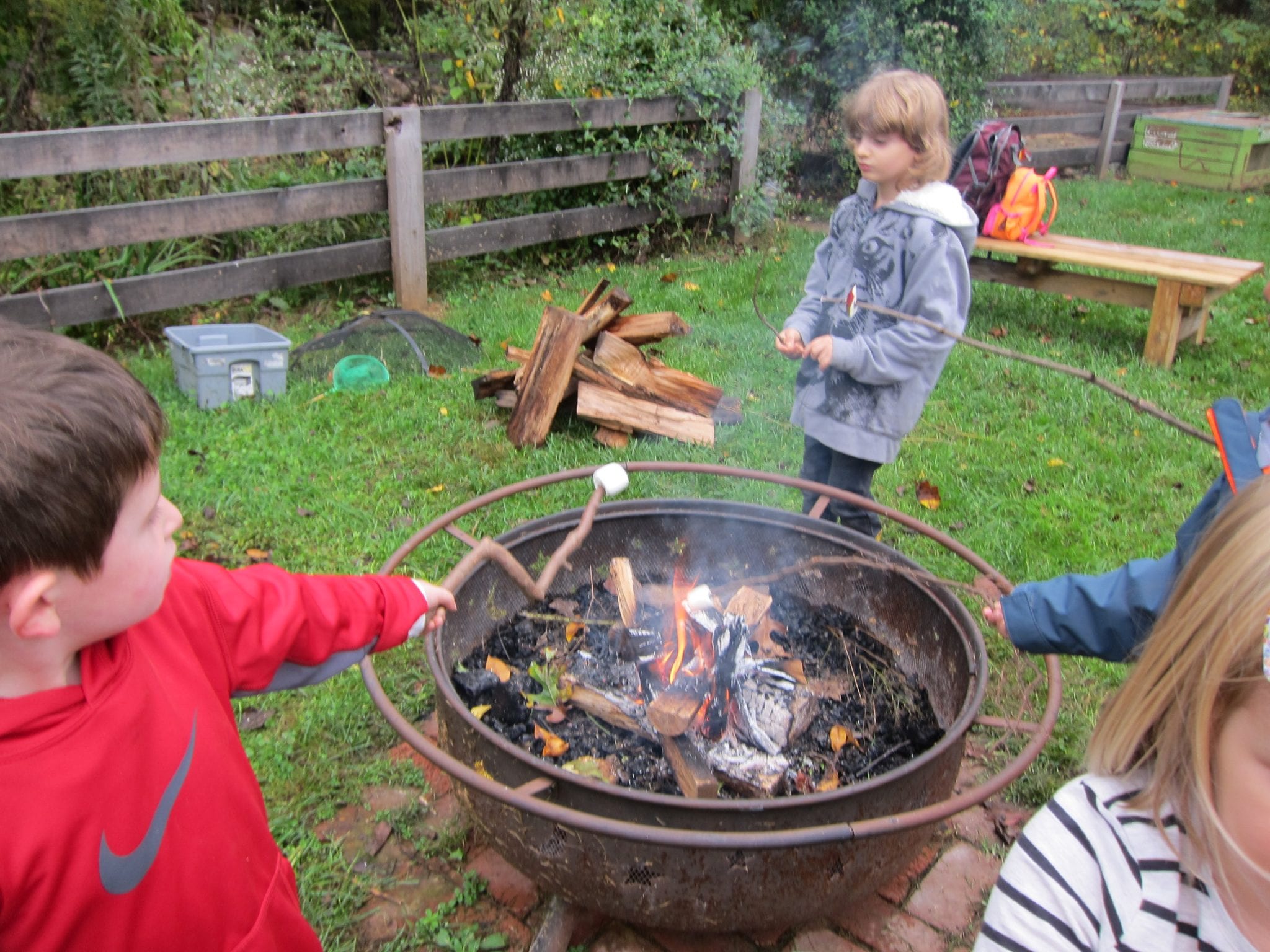 We roasted apples and marshmallows and saw what happened when we fed different things to the fire! Our favorite thing to burn was dry leaves because of the way they curled up when they burned!
