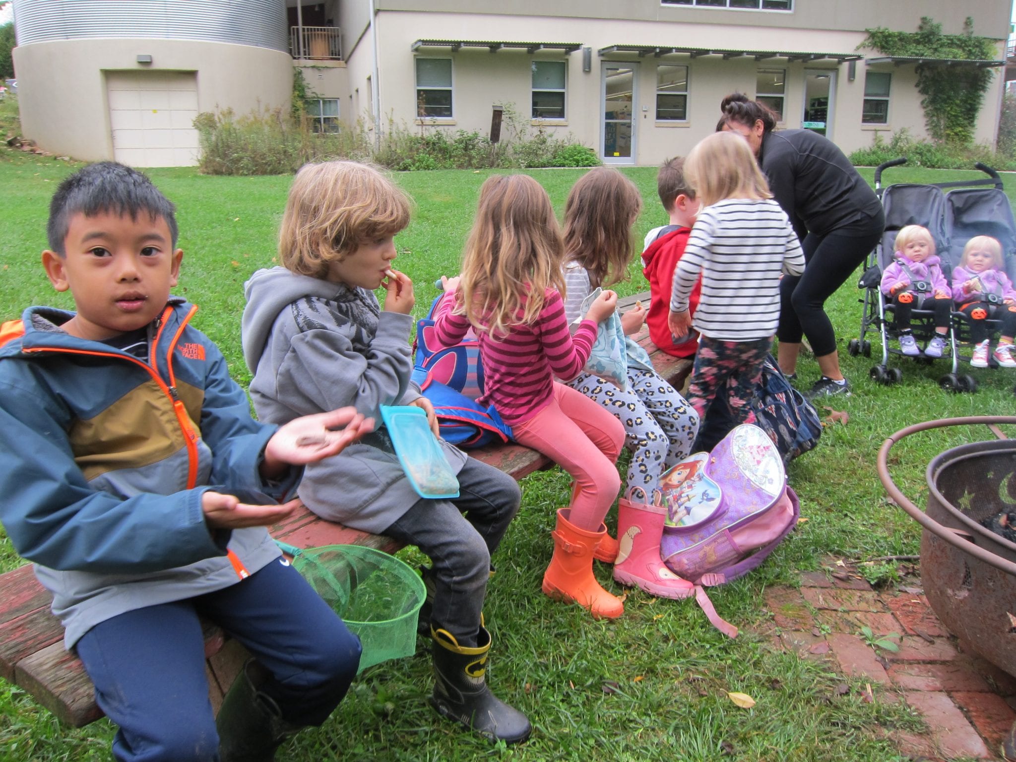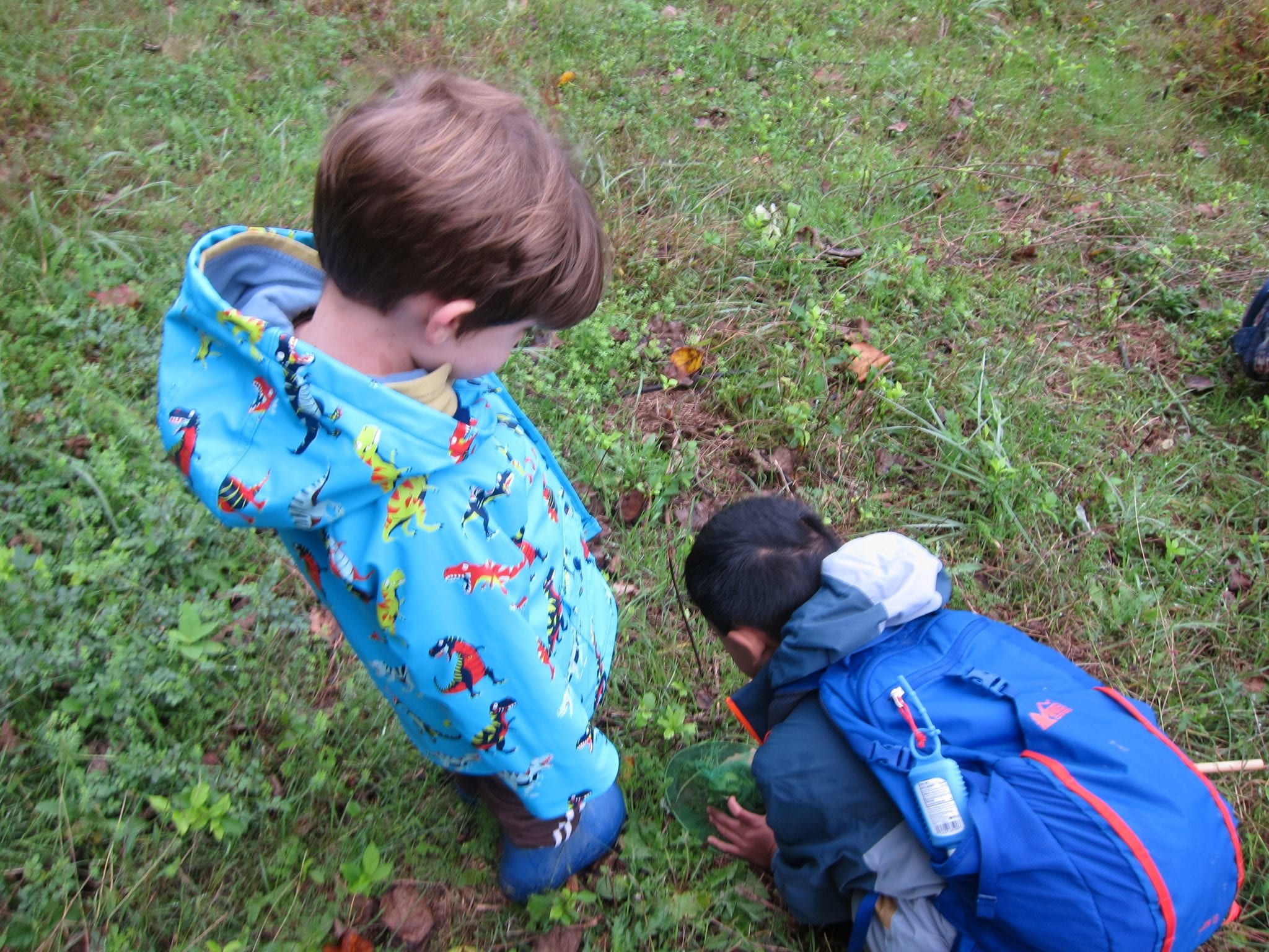 Our book for Wednesday was Mushroom in the Rain by Mirra Ginsburg and with seemingly perfect set up, right after the story, we found a trail covered in young mushrooms! And may I add, we have some really hard workers here that will put our groundskeeper, Mr. Wally, out of business. We had some Grade A grass clippers. We took some scissors and went to town! I hope the same vigor is used at home to help out around the house!