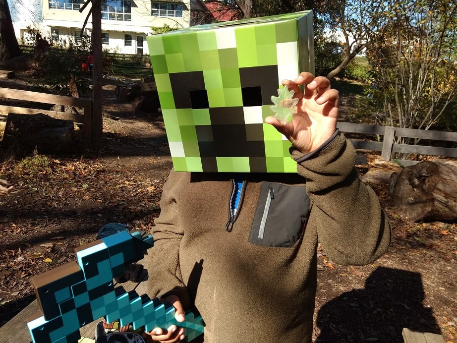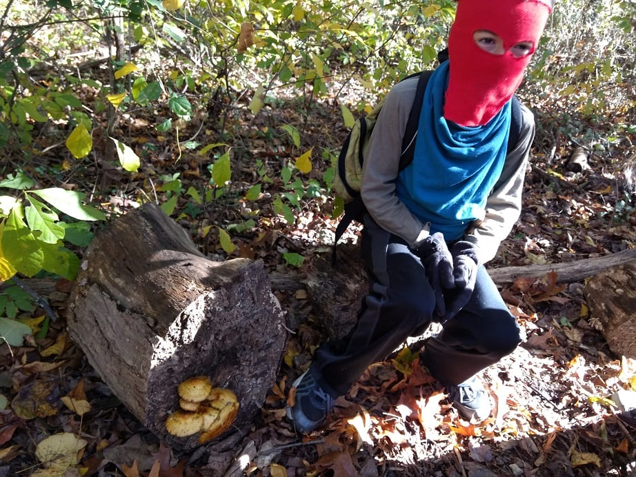 Happy Halloween! Today was our mid-semester campfire which we got to celebrate with the other homeschool classes and our families and friends. Some of us even came in costumes! Before heading down to the campfire we passed out the silicone molds. Last week we were learning about spider silk and how people use learning from the refractive properties of spider silk to help save birds from hitting glass windows. We tried different things in our molds from acorns to rocks to leaves, ferns and flowers. Our molds were in the shape of oak leaves and acorns. Afterward we made our way down to the barn. On the way we collected a lot of sticks for our fire and found a red-backed salamander, silver variety, at our log circle spot. Even though they look small the one in the picture (below in the gallery) is a full grown adult getting ready to wait out the long, cold winter under a log in the warmer soil.