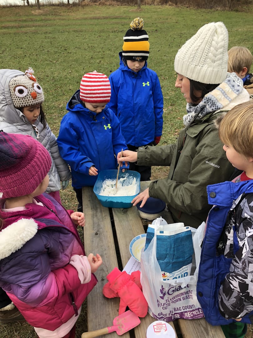 Next we tried making “Bread on a stick” (Bannock) with our Forest Dreamers. The children enjoyed reading the recipe and then mixing all the ingredients. We even got some singing into the process! “‘Dough’ a deer, a female deer, ‘Ray’ (melted butter) a drop of golden sun…” This brings back memories of one of my favorite songs growing up!
