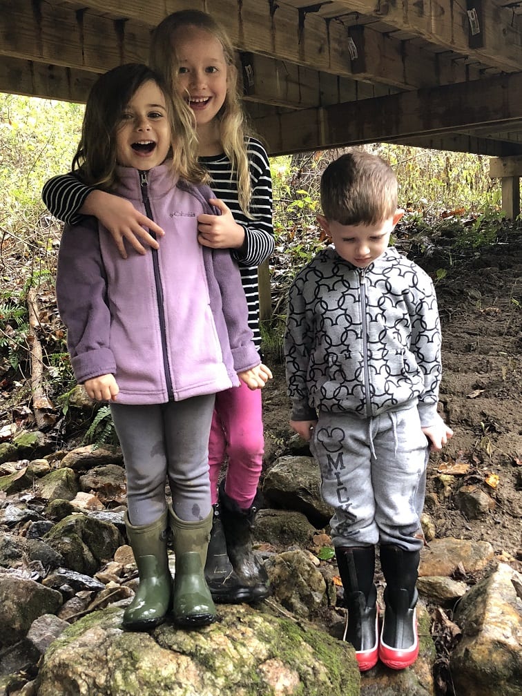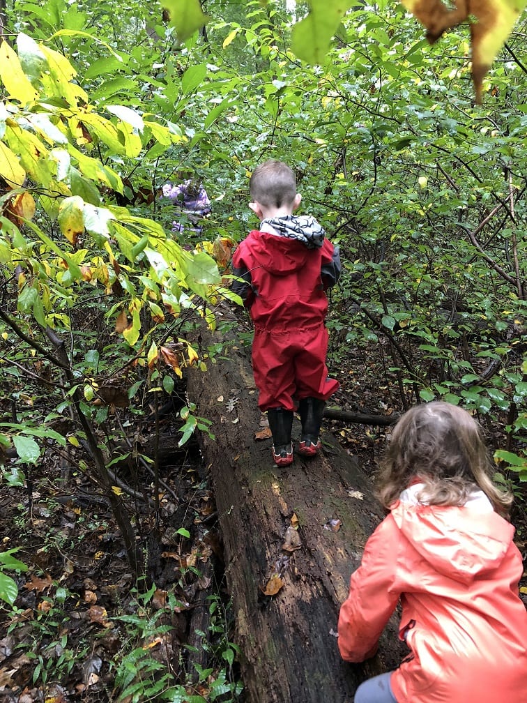 We had a slow start this misty morning! We gathered our crew and started down the trail with promises of a special surprise.  Nestled back in the spice bush forest is a story circle…but not just any story circle…Salamander Circle! As we carefully rolled the stumps over, we discovered small, large, and multiple salamanders for a total of 11!! In one area! What a find!