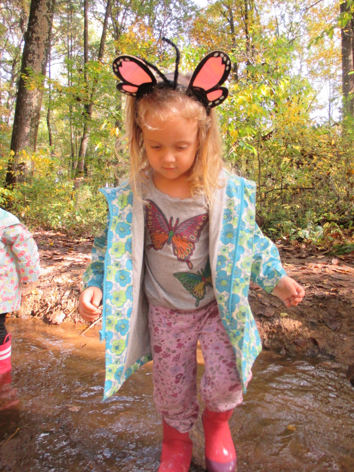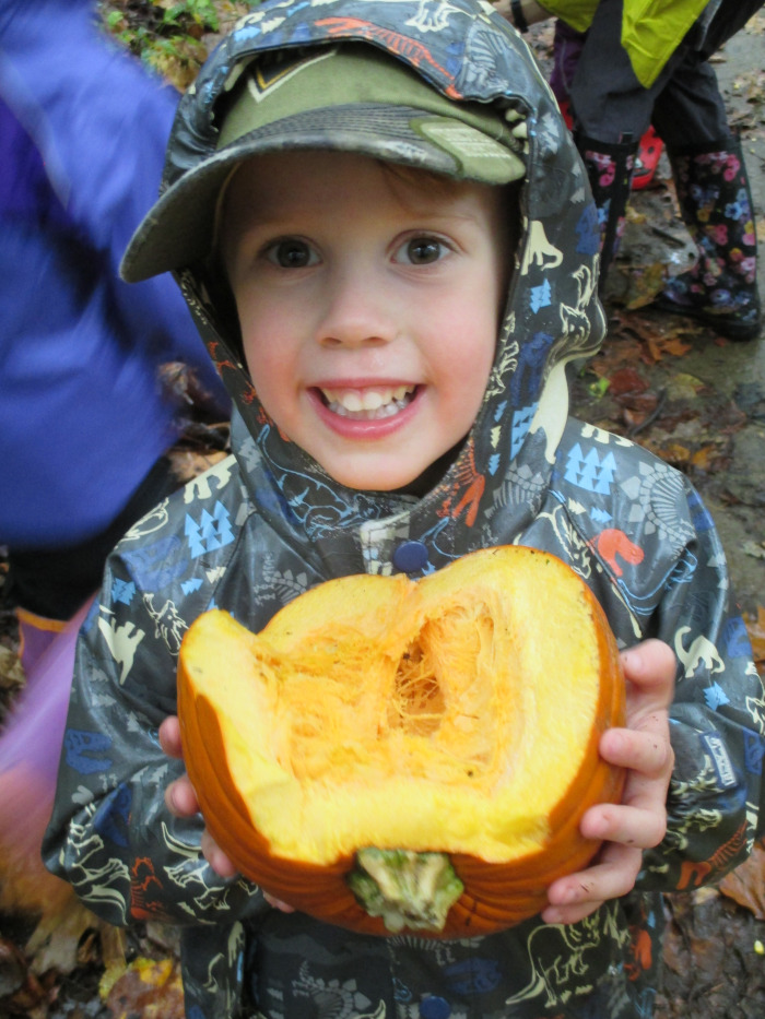 The children continued to explore the seasonal connections between the farm and forest. From pumpkin and gourd rolling to apple tasting, the children discovered how harvest foods are important to animals, including people. With all the rain, we also visited the “magic stream”. This provided opportunity to explore how things sink or float. Favorite activities included a pumpkin provocation for painting and an invitation to play with beautiful natural objects and fruits on the overhead projector.