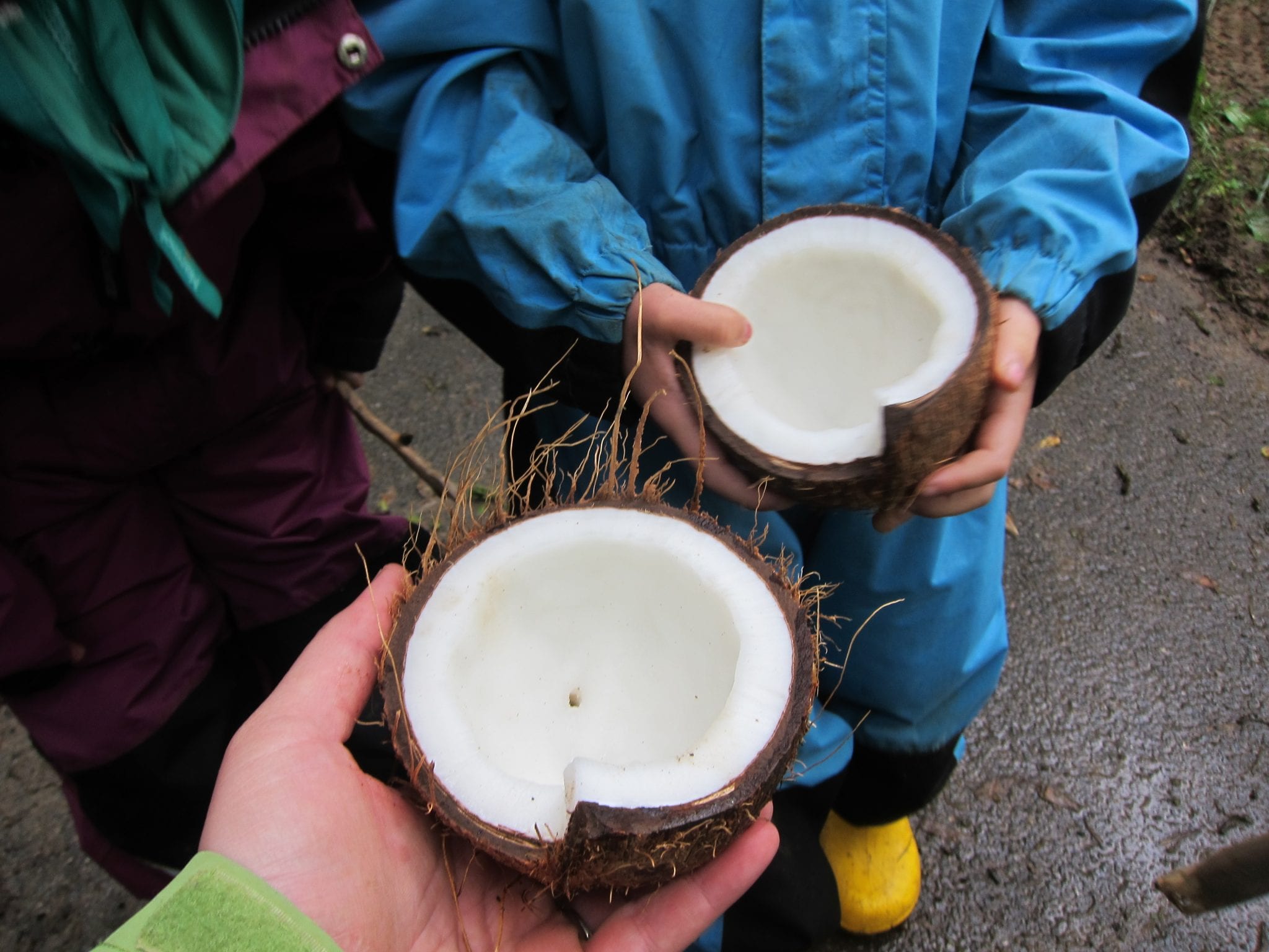 After harvesting the water, we burst the coconut onto the road and everyone had a slice!