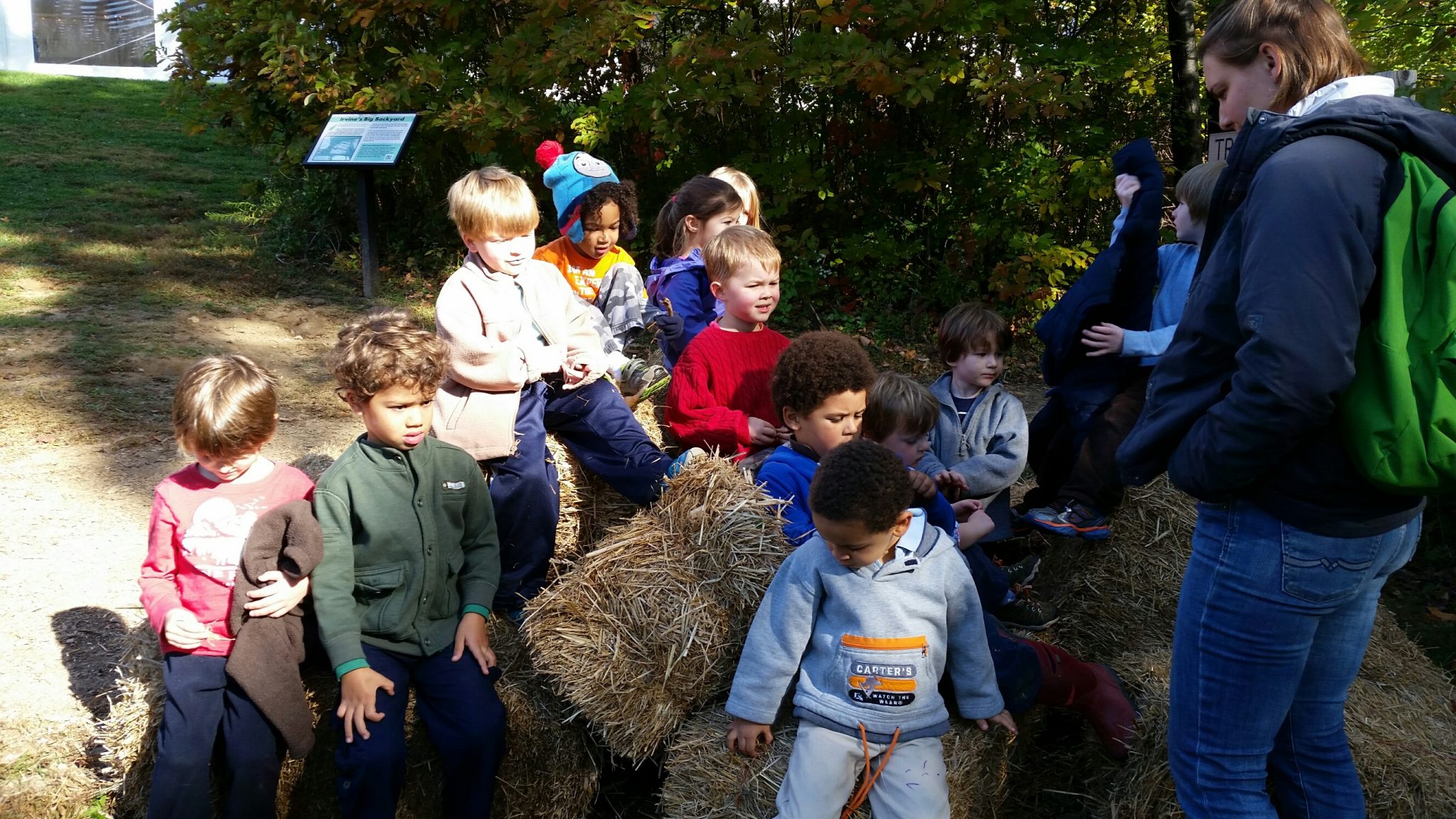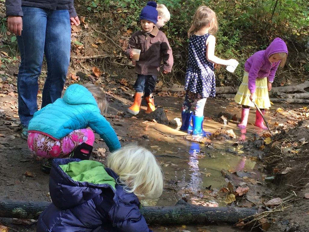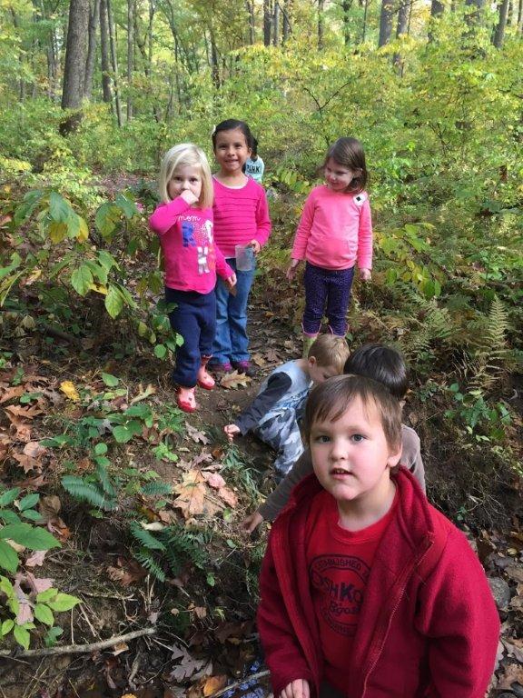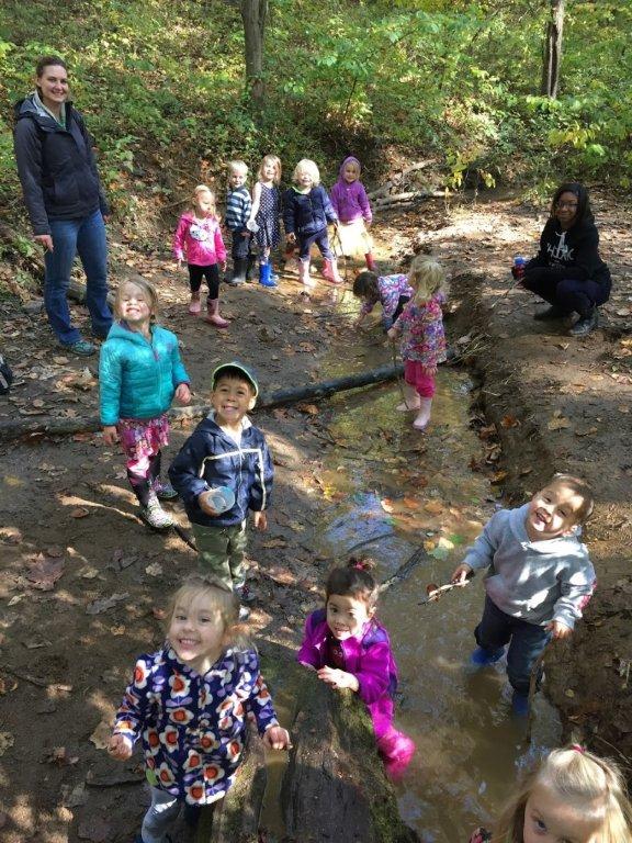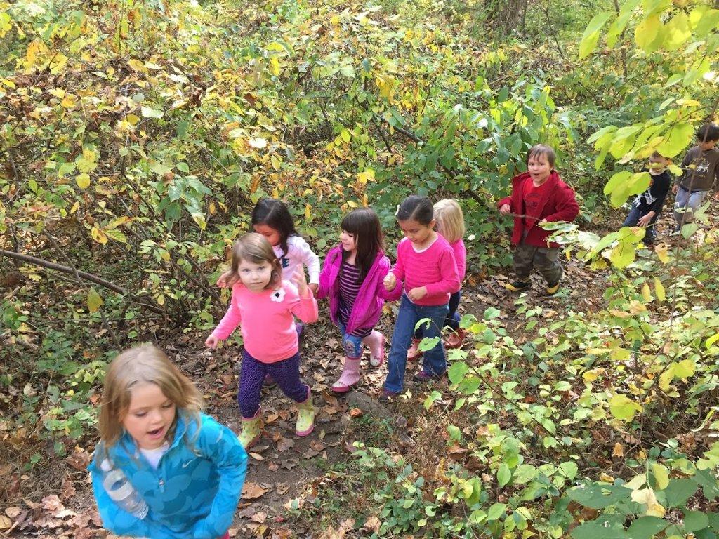 The Nature Preschool at Irvine had a week full of fall fun! We explored the autumn harvest with pumpkins, gourds and apples! Mr. Brooks, Executive Director of Irvine Nature Center, showed the classes how to use the cider press to make apple cider! We took pumpkins and gourds to the meadow, went on harvest hunts and explored the ever-changing stream! On Thursday, we all met at Rodger’s Farm and maneuvered our way through a corn maze, went on a hayride and picked a pumpkin from the patch!