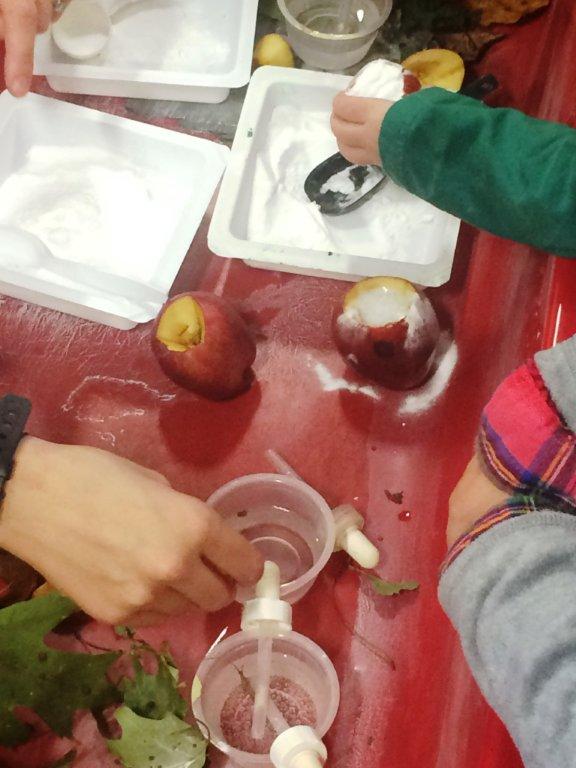 - Apple Sensory Science Experiment – Exploring Chemical Reactions – apples, baking soda, vinegar, scoops, eyedroppers