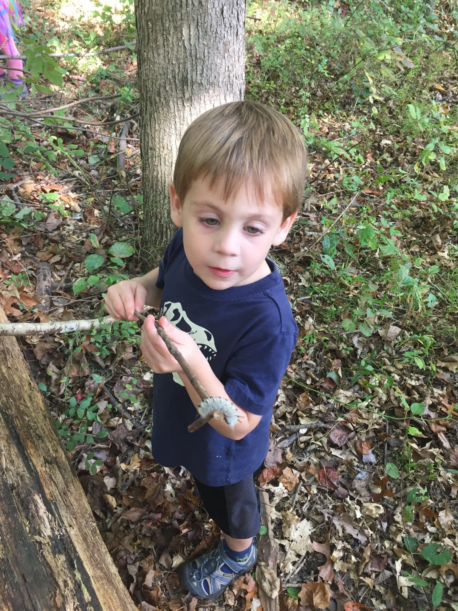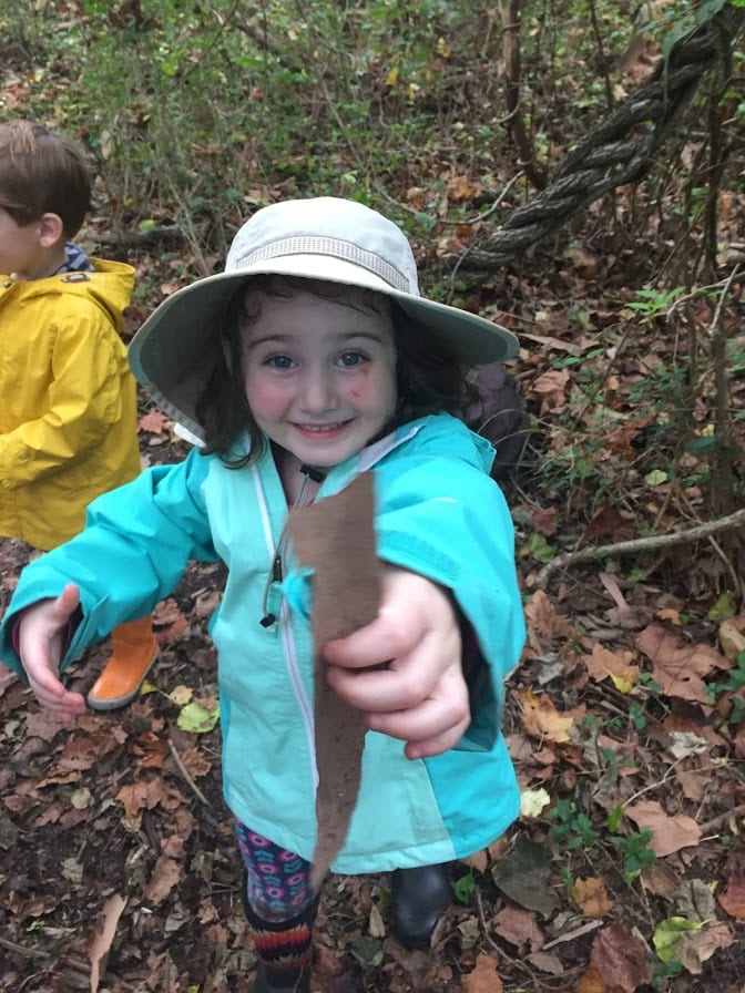The beauty of Nature Preschool is that we focus on nurturing the innate curiosity of our children. We provide the setting and nature provides the lessons, with children directing their own experiences. Where should I put my feet when I’m climbing this tree? How many sticks will I need to gather before the lean-to is finished being built? Am I comfortable touching the corn snake that visited our class? How high up this tree can I go while still being able to get down on my own, and will I go higher next time?