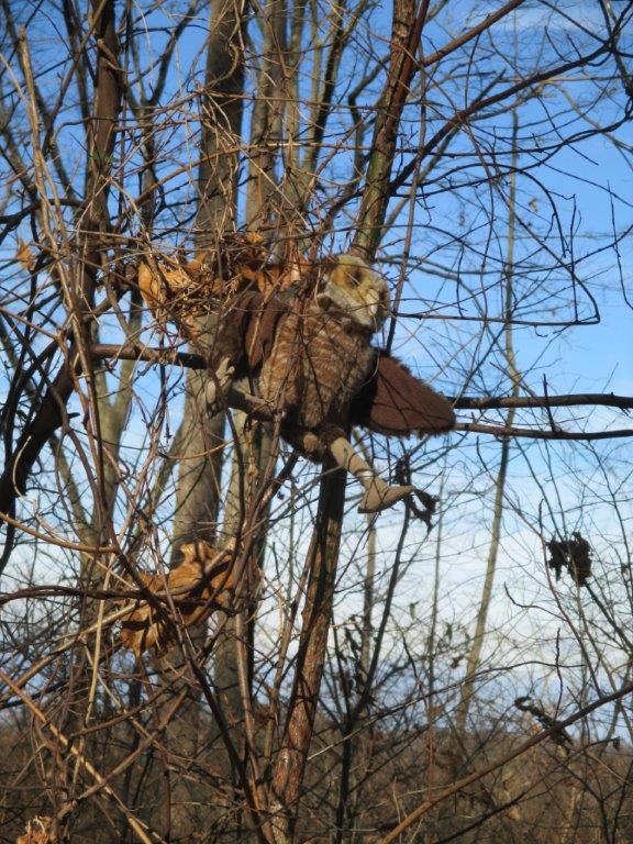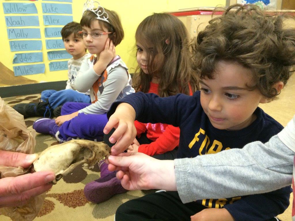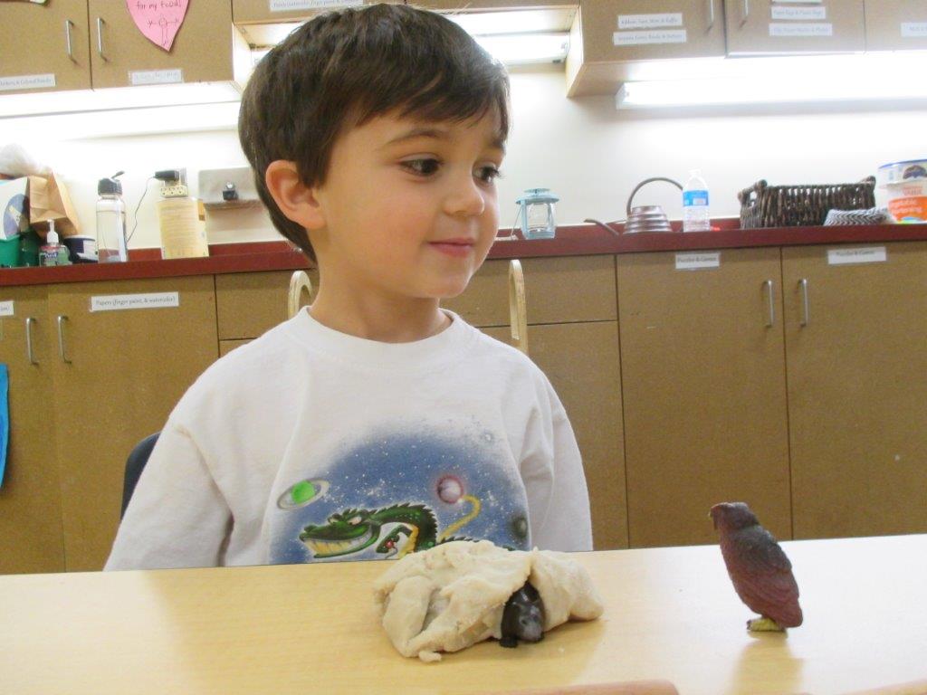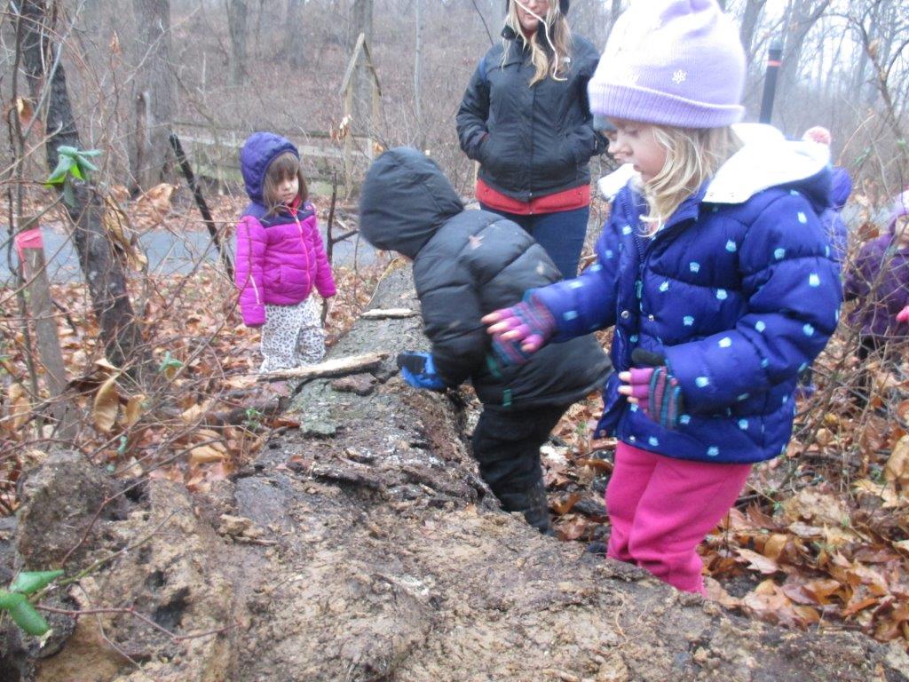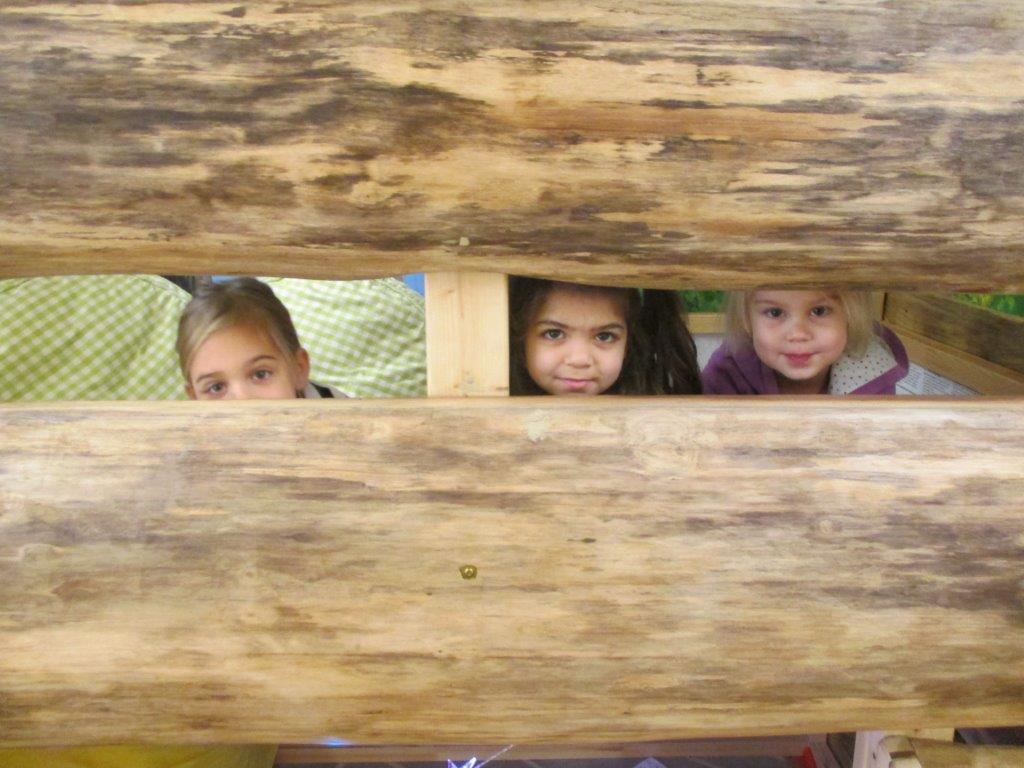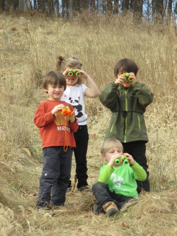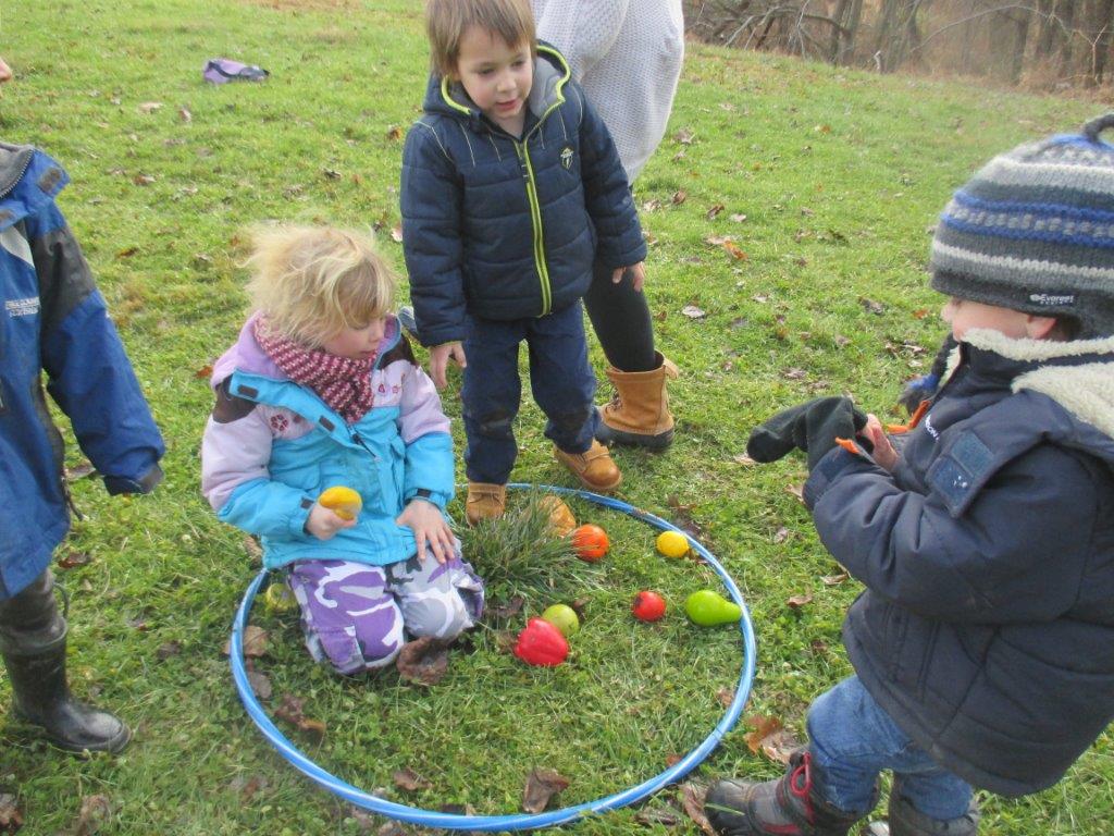 Everyone is planning on getting warm this winter! How do you stay warm? How do animals stay warm during the long, cold winter? That was the question on everyone’s mind this week! We learned about hibernation, migration and adaptation through games, discussions, and hands on exploration. Out on the trails we kept our eyes peeled for any area that looked like a good place for an animal to cozy up for the cold months. If we saw a hole in the ground, a hollowed out log, or nook under the rocks we called out, “Hibernation Station!” and gathered round to explore! We humans prepare for winter by wearing warming clothing, adjusting to the shortened daylight hours, and stocking our kitchen cupboards! How do animals adapt to make it through winter? Some animals get harder to see because they change color to camouflage with the bare branches or white snow. Out on the trail we hid several different woodland puppets and the children used their best “owl eyes” to search out those camouflaged critters!