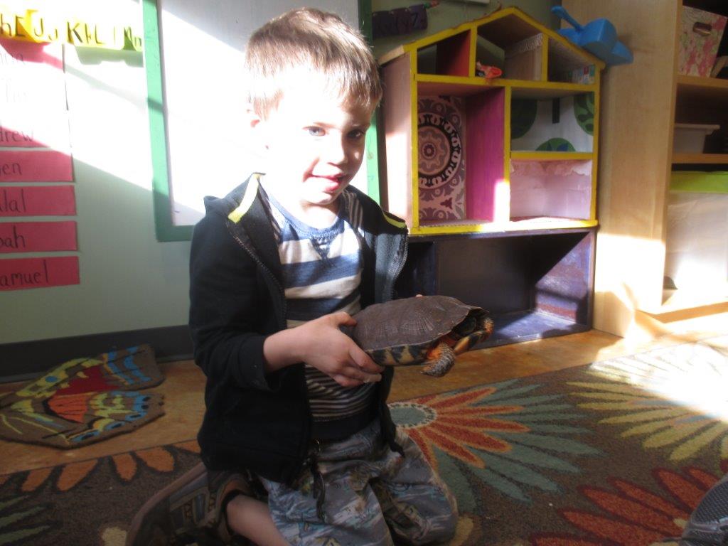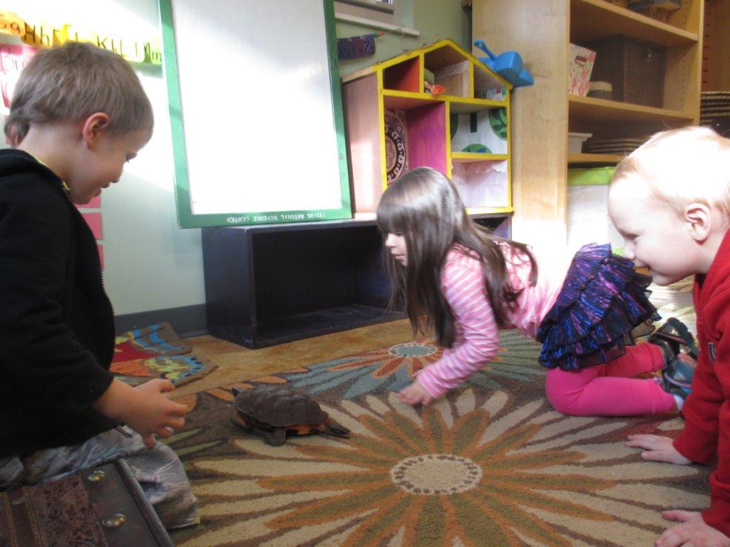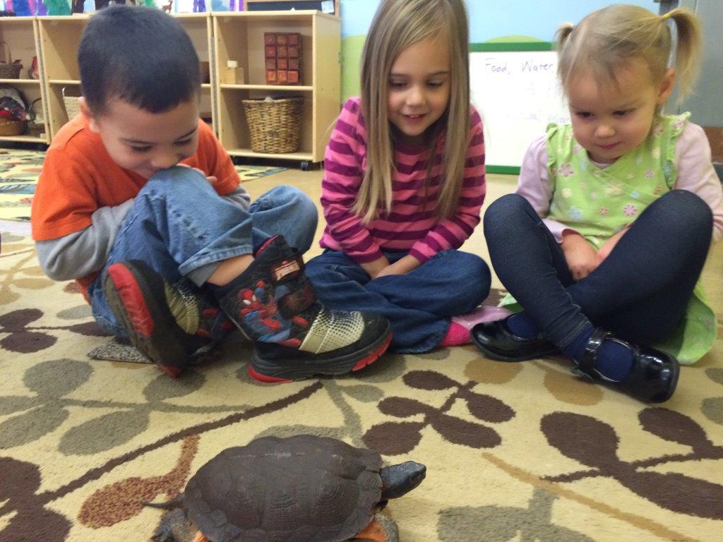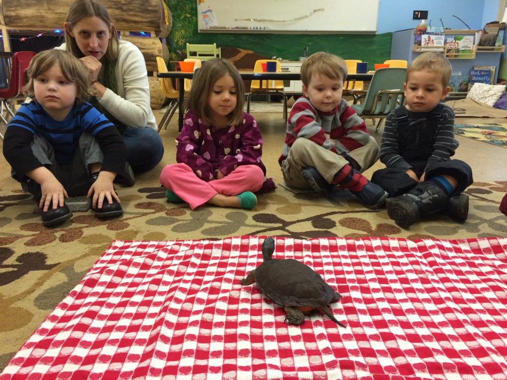 - This wood turtle is bringing some excitement to these friend’s faces!