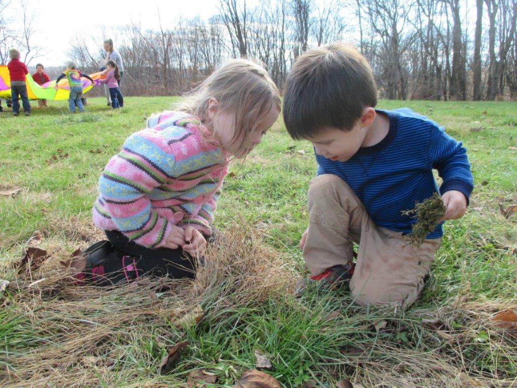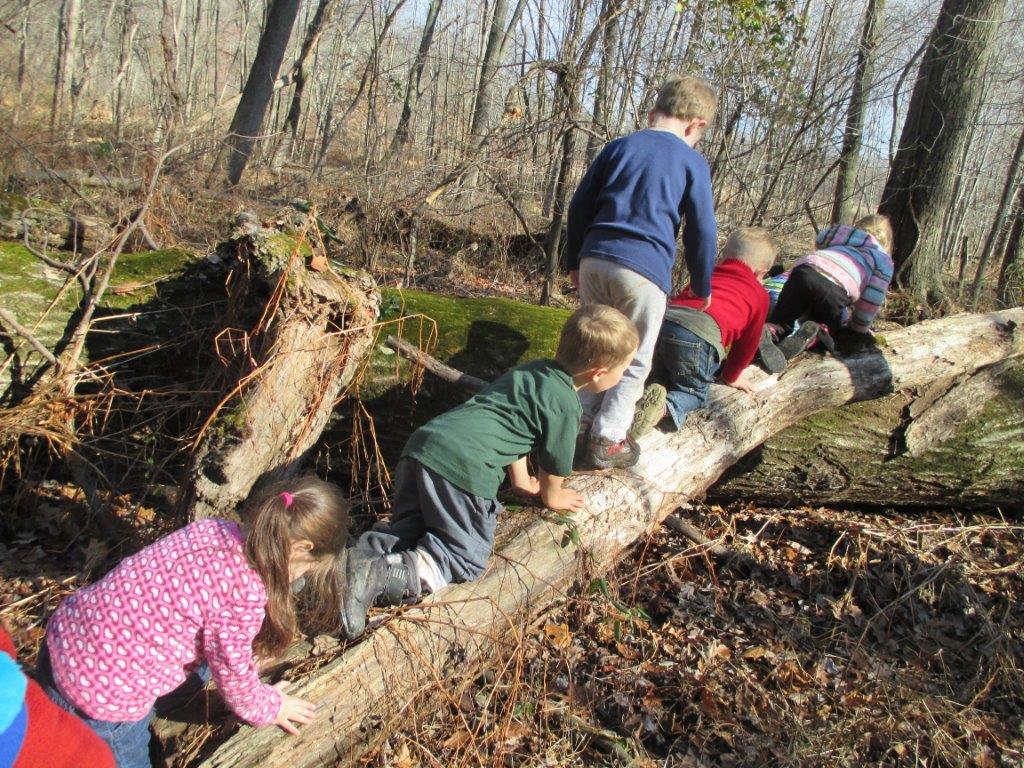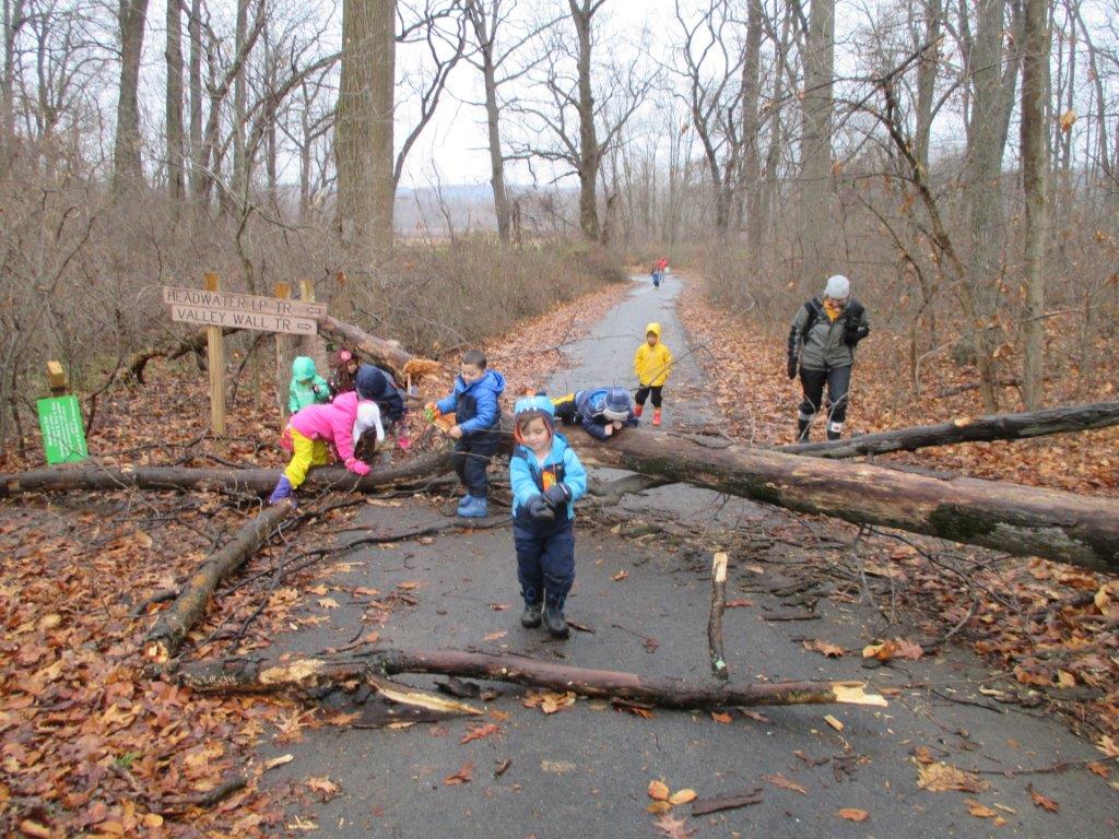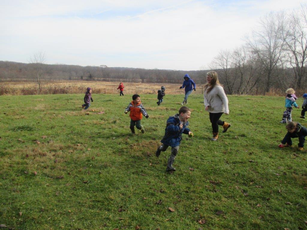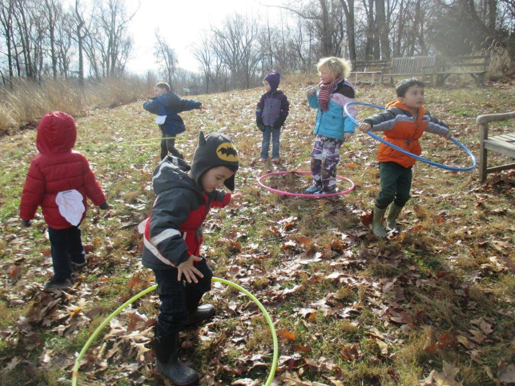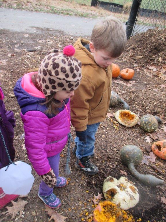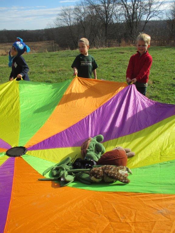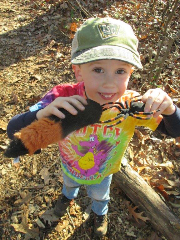 One of our most exciting activities was a live animal encounter! It hibernates, has a shell, and moves slowly! Can you guess what it was? Another favorite adventure was exploring a dead tree that had fallen across the road! It knocked down a smaller tree that was still living and the children made several comparisons between the two! We made deer tails and all the girls (does) and boys (bucks) frolicked through the meadow! We went into the tall grass to act out hiding from predators and discovered grass that had been bent over from real deer making their beds! How exciting! Keep your eyes peeled there are signs of animals preparing for winter all around us!