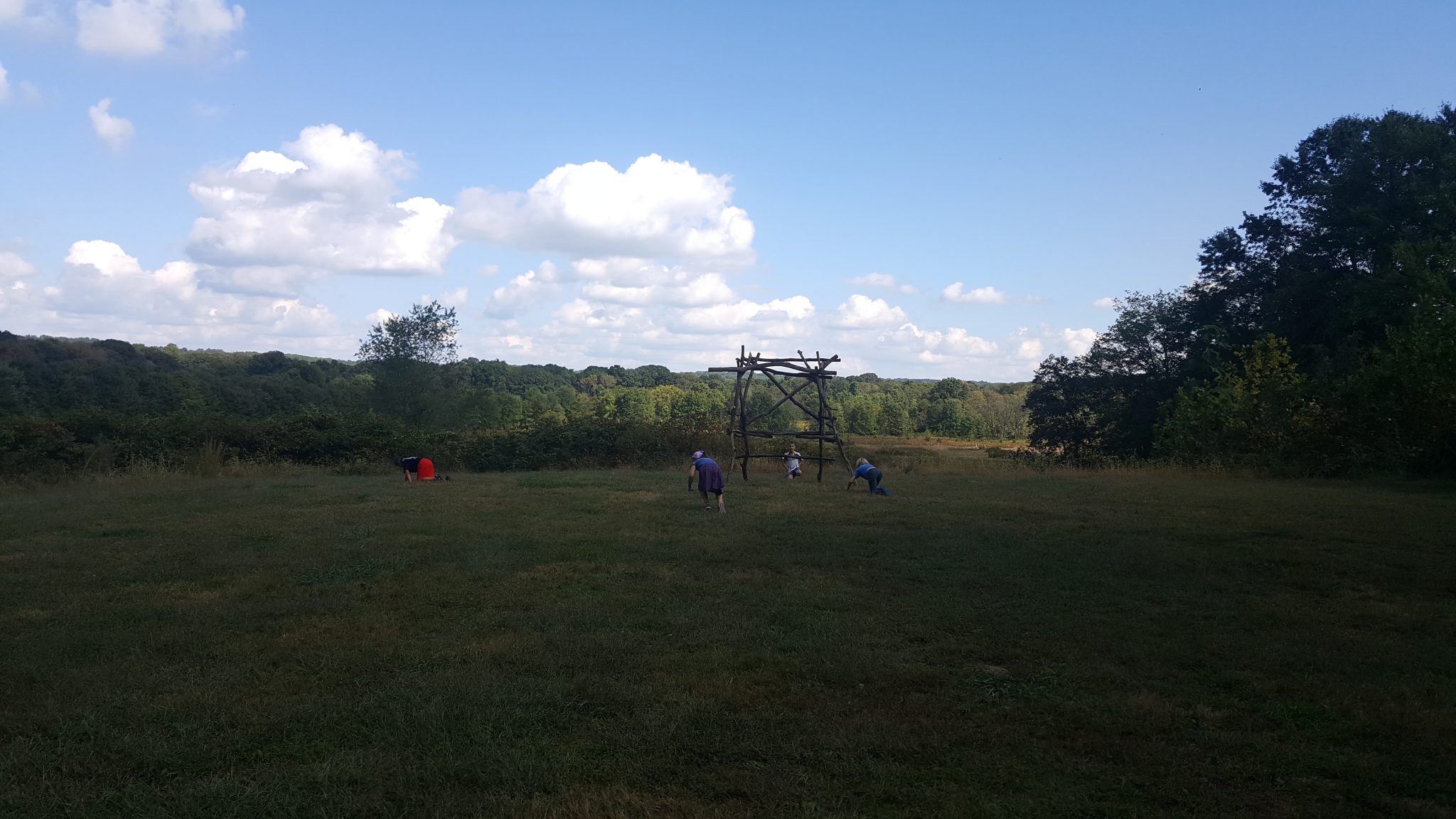 We did however practice making fire! I gave the group a collaborative challenge. They had to build a fire structure together and each had the ability to light one match to make a fire with a visible flame to last at least a minute. They could also each ask me one question! It had just rained the day before, but some people noticed there were dry hay bales that were covered by a roof near the firepit. Although you would not be able to find tinder that way in the middle of the woods, I counted it as I thought it was creative! Not everyone wanted to try to light the matches, but for those that did, they were successful in lighting the fire! I really appreciate group challenges because they tell guides a lot about group dynamics and how comfortable individuals feel with different skills. Hopefully, they are also really fun!