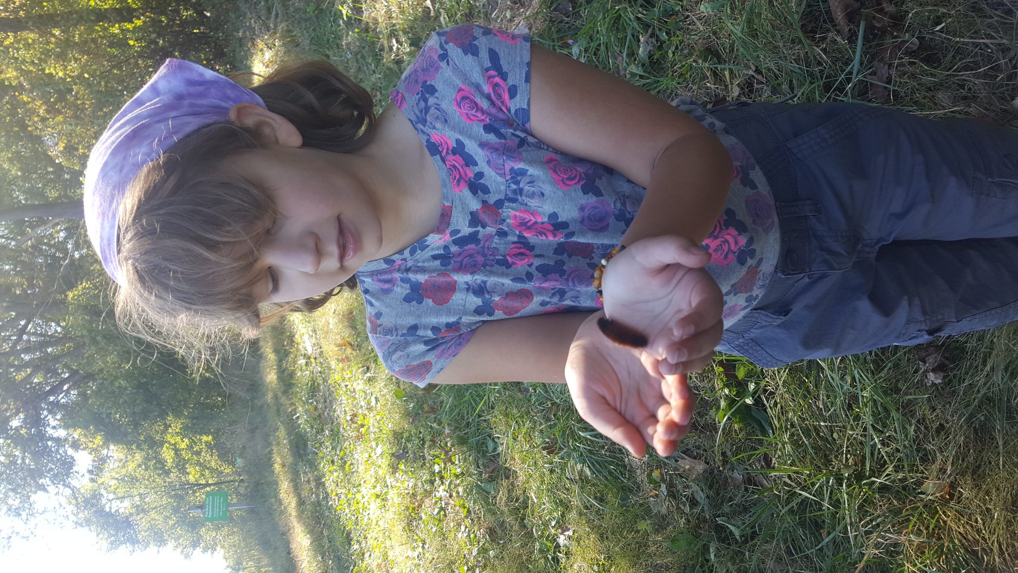 Afterwards we explored the meadow for a bit and found a Woolly Bear caterpillar (Pyrrharctia isabella). Kelly showed us how all caterpillars like other insects actually only have six “true” legs and the rest are called prolegs. Some people believe that you can predict how harsh the coming winter will be depending on how many black versus brown segments the Woolly Bears have!
