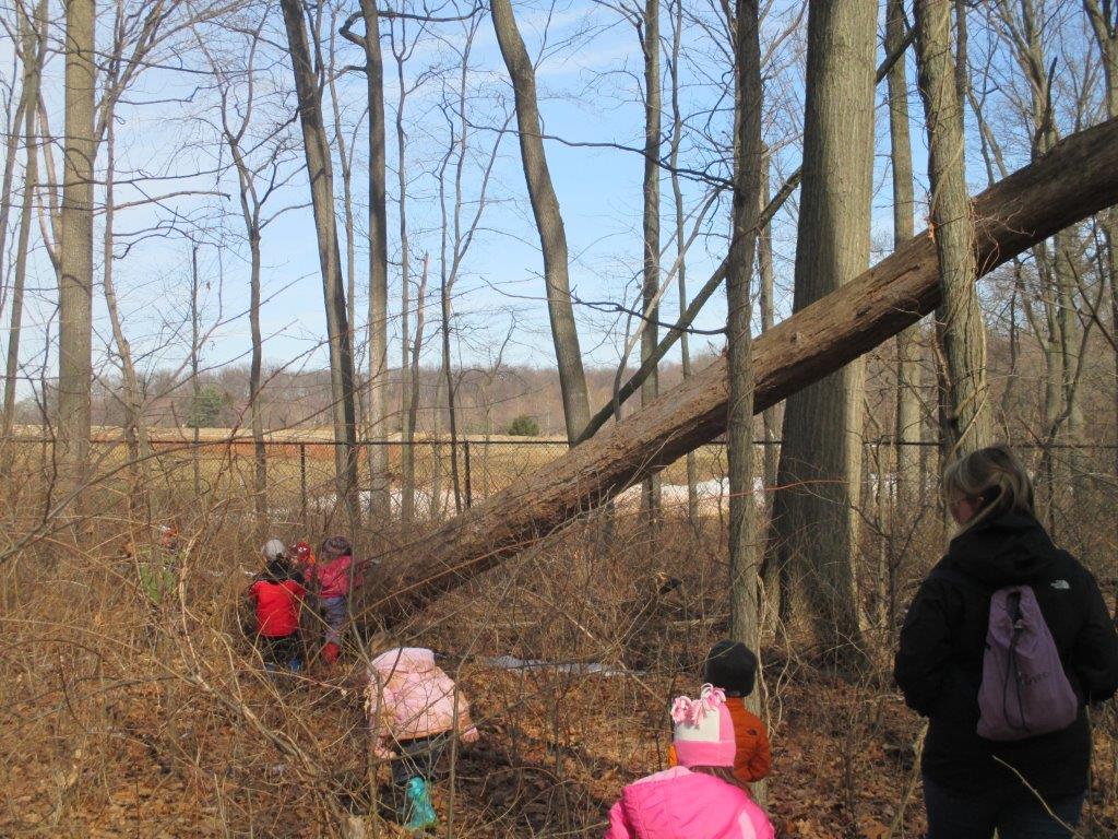 - The Hawks wanted to explore this fallen tree in the deep woods!