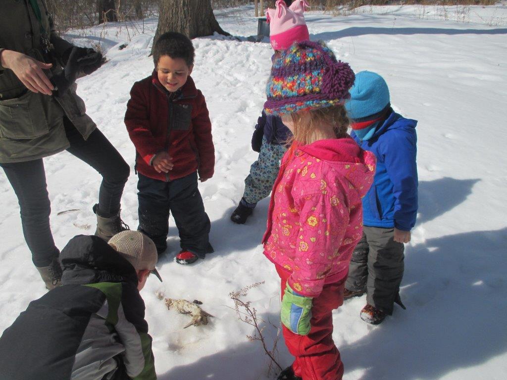 - Investigating an owl wing we found on the hike!
