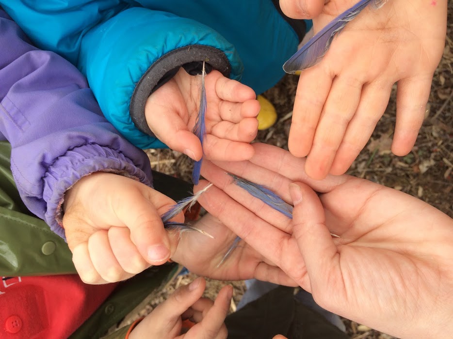 -The Coyotes used egg shaker maracas to sing songs about nests and eggs! They enjoyed exploring a wooded area dividing the meadows and found mud, blue jay feathers, woodpeckers holes and more!