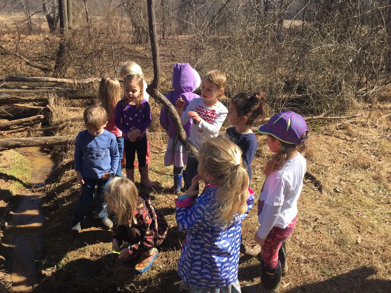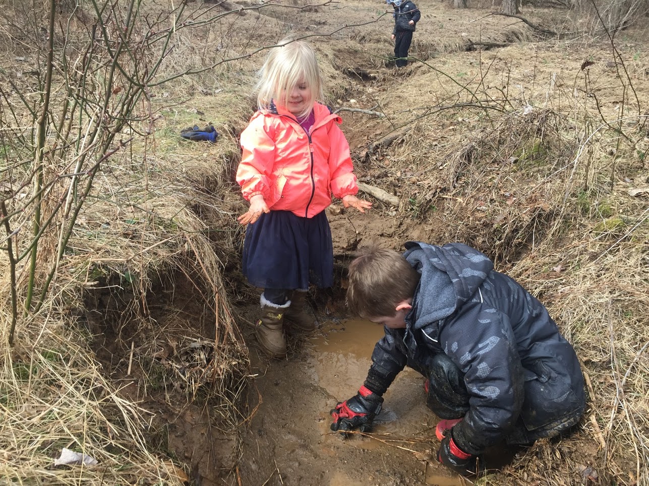 - The beautiful sunshine inspired so much outdoor exploration. The children climbed into a trench that is usually filled with mud and enjoyed seeing how it has changed in the warmer weather!