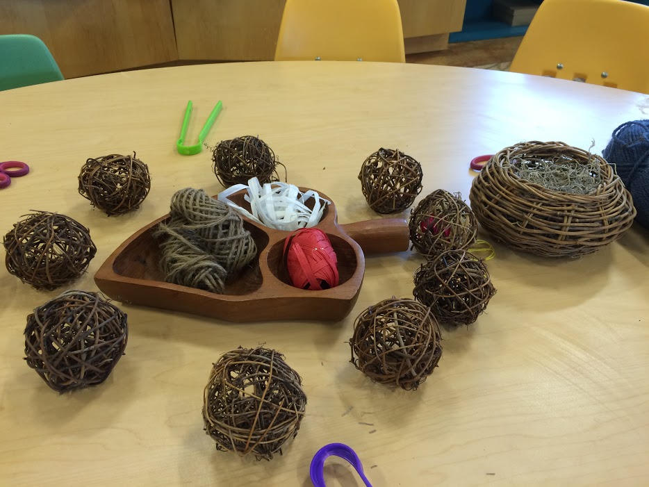 - The children made nest helpers! They used tweezer to push feathers, string, raffia and drier lint into these balls made from vines.