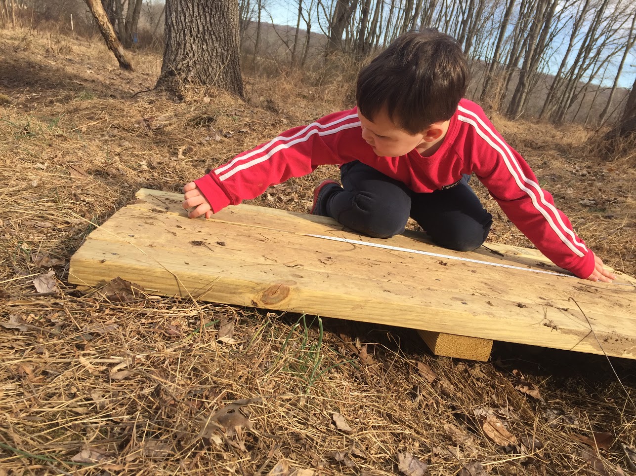 – The Rabbits enjoyed checking out the bluebird nest boxes to see if “anyone” was home. They took tools outside. They used the measuring tape to measure items found on the trail and scissors to trim invasive pricker bushes!