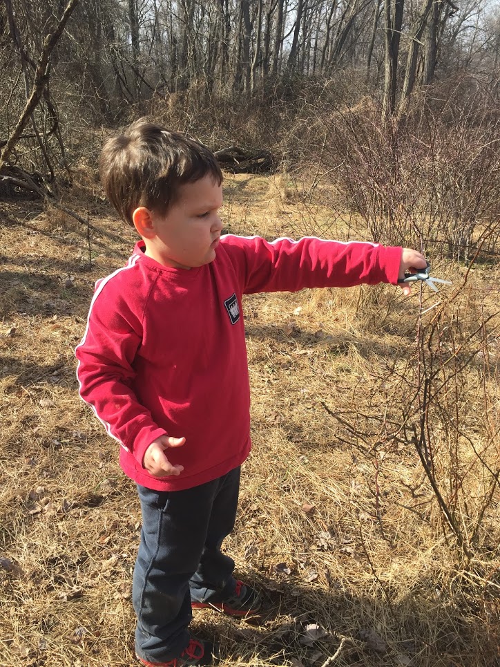 - With spring, comes many pricker bushes. We started our trimming early to help make exploring more comfortable for our friends.