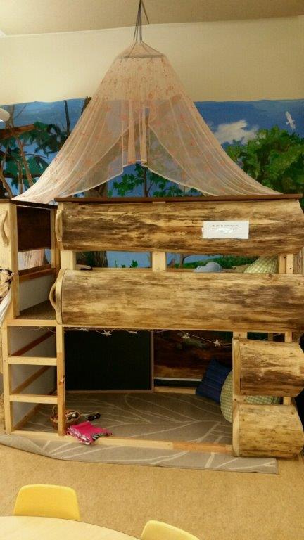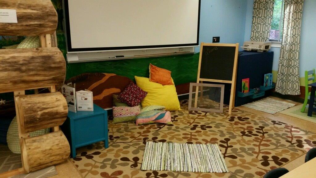 The downstairs classroom got a major makeover! The tree mural has been repainted and some bright green leaves have grown on it over summer! There are lots of new fun colors on tables, chairs and cabinets! There even were some new curtains sewn for the windows!