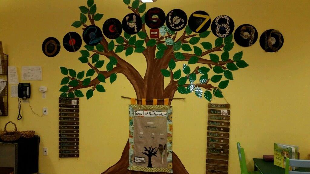 - The downstairs classroom tree has come to life! Look at those summery leaves!