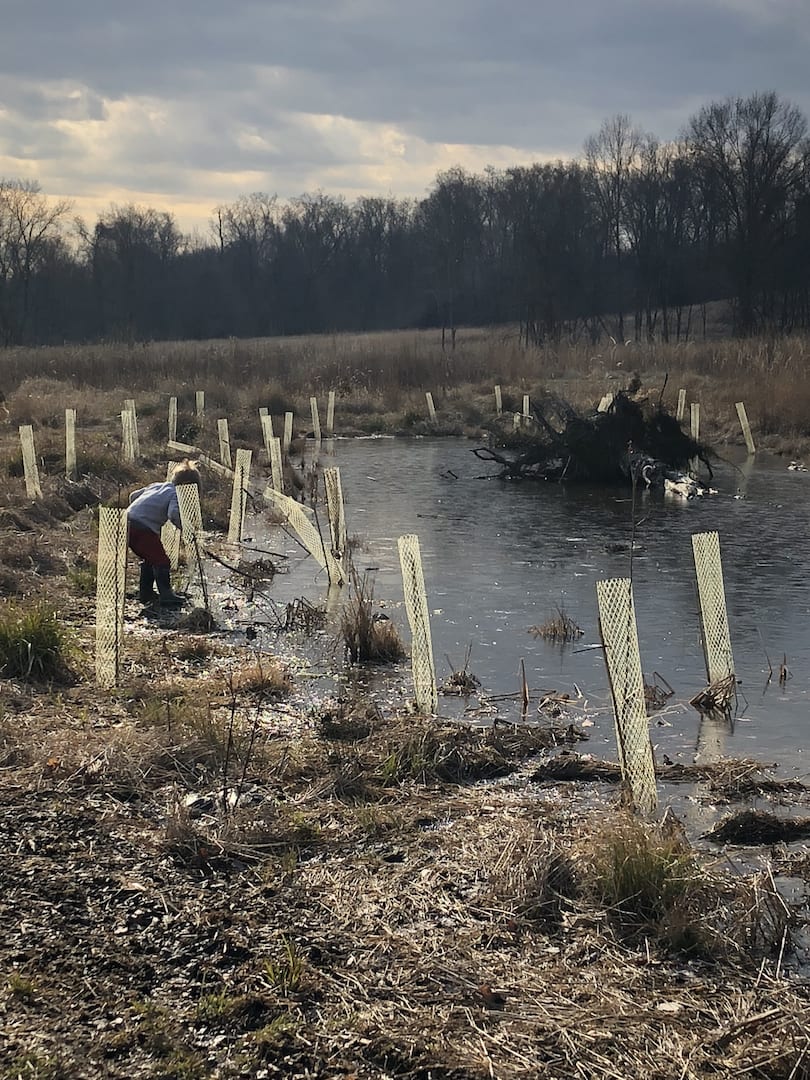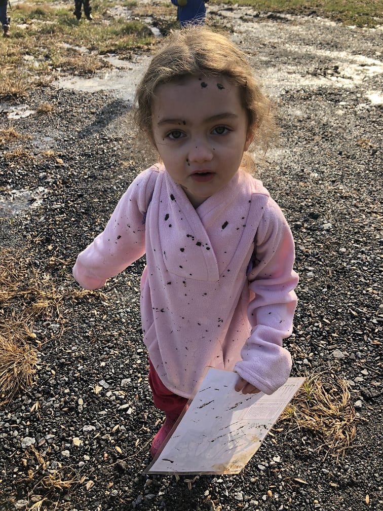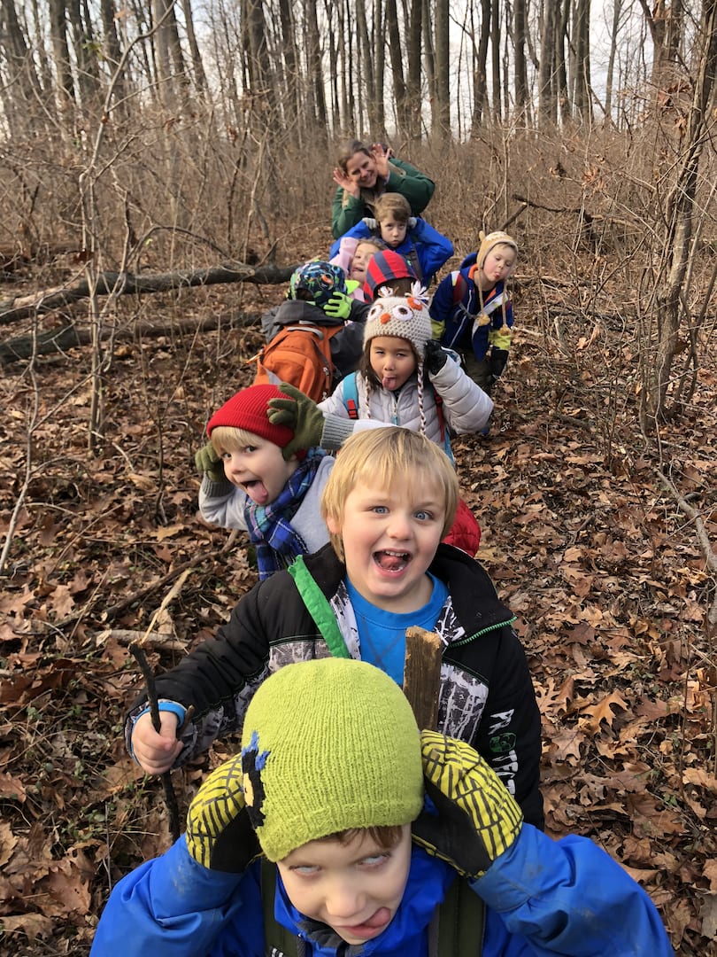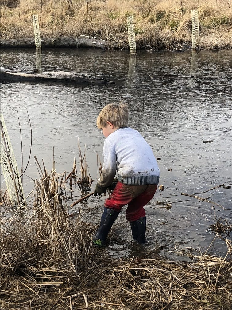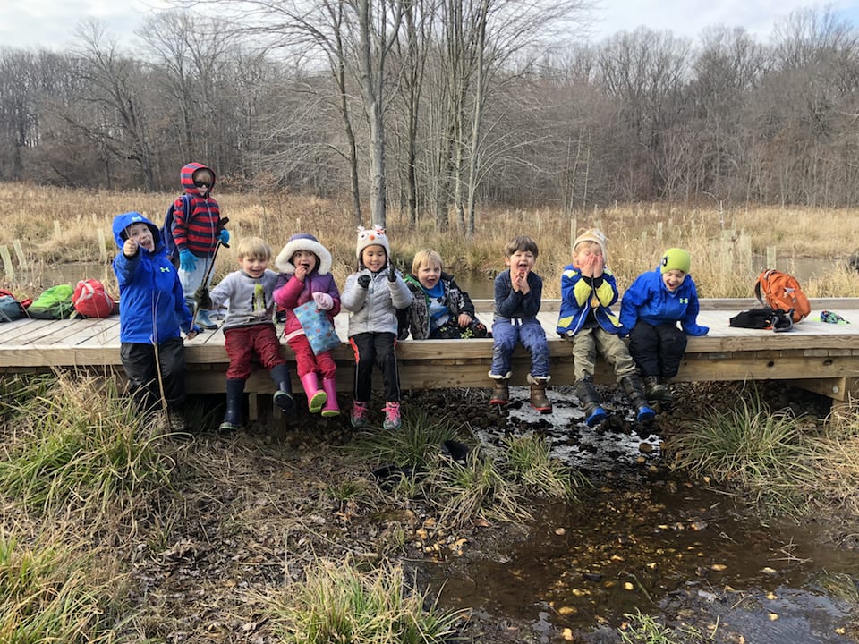 The ponds looked frozen as we approached but as the kids threw sticks on the water, they quickly made several holes on the surface. This caused excitement as the children proceeded to harvest the ice and even enjoy a frozen treat of “icicles”.  They investigated the stream and found, to their amazement, some crane fly larvae. Everyone wanted to hold this discovery and watch the segments move as the larvae tried to escape their confinement. Who knew kids could have so much fun in the (near)winter!