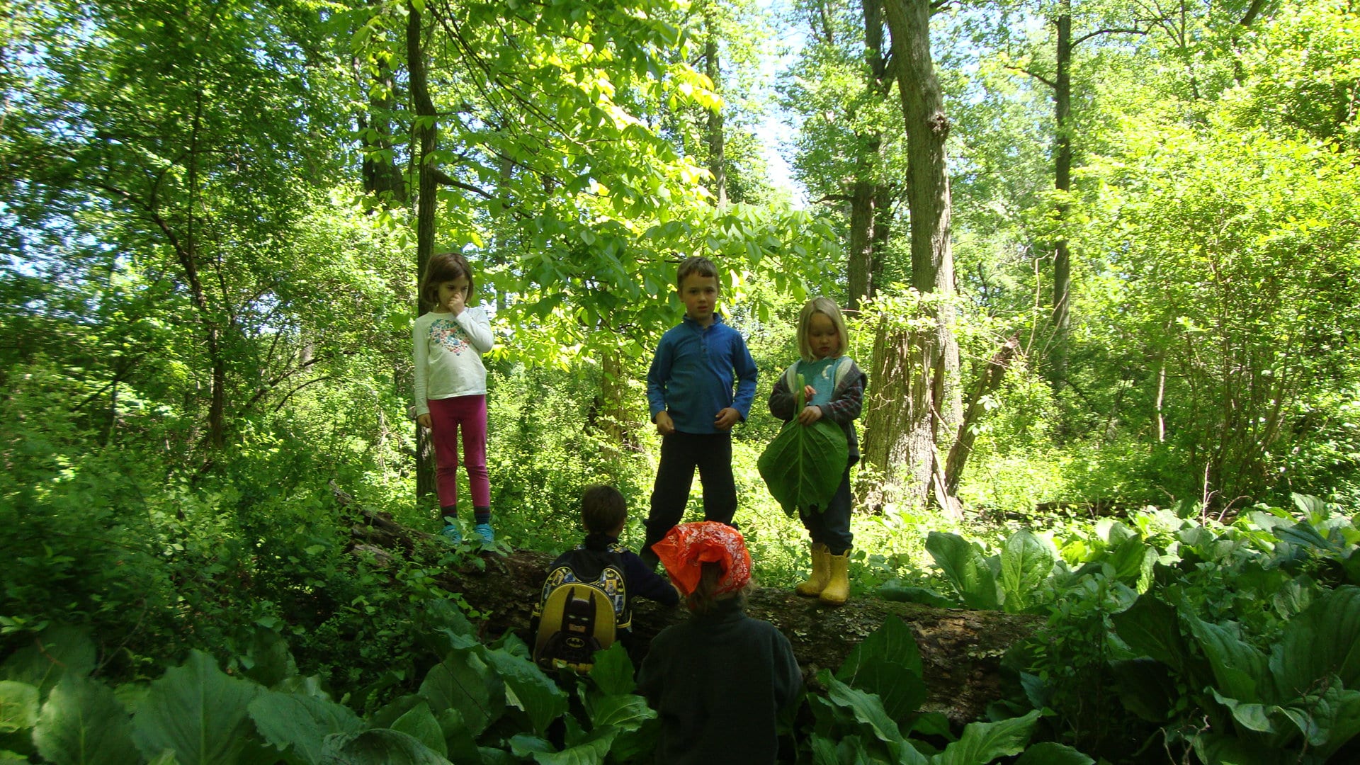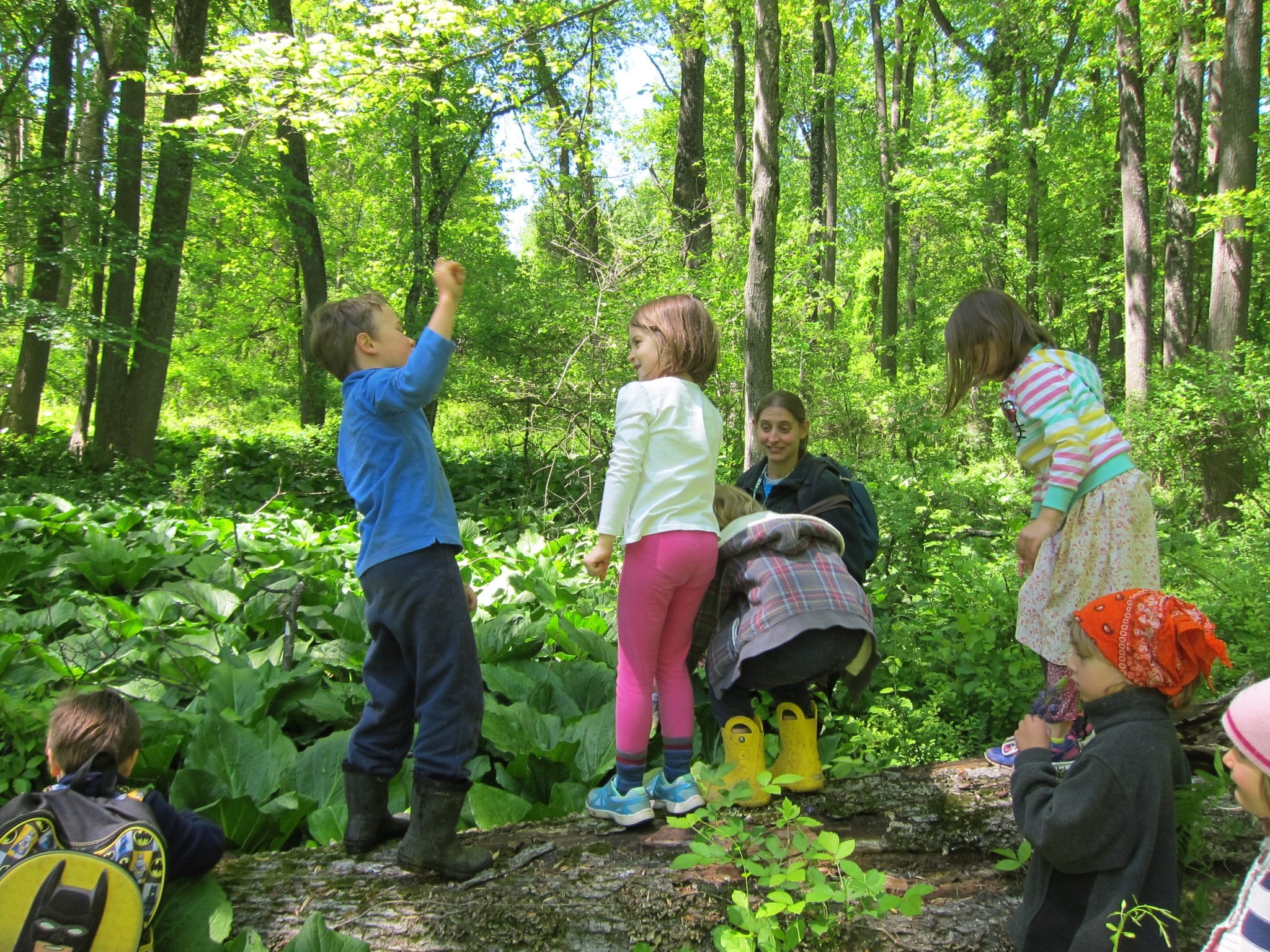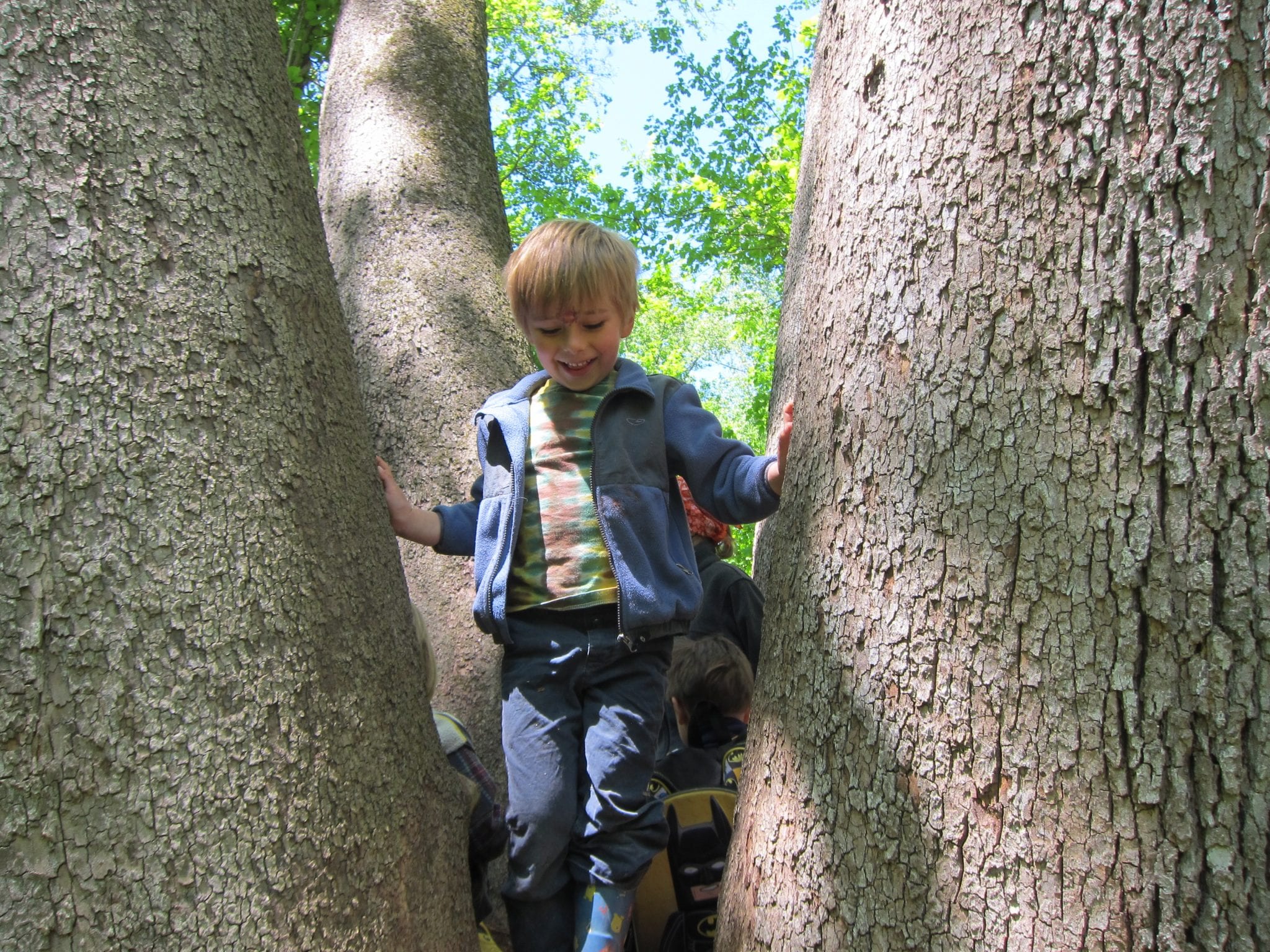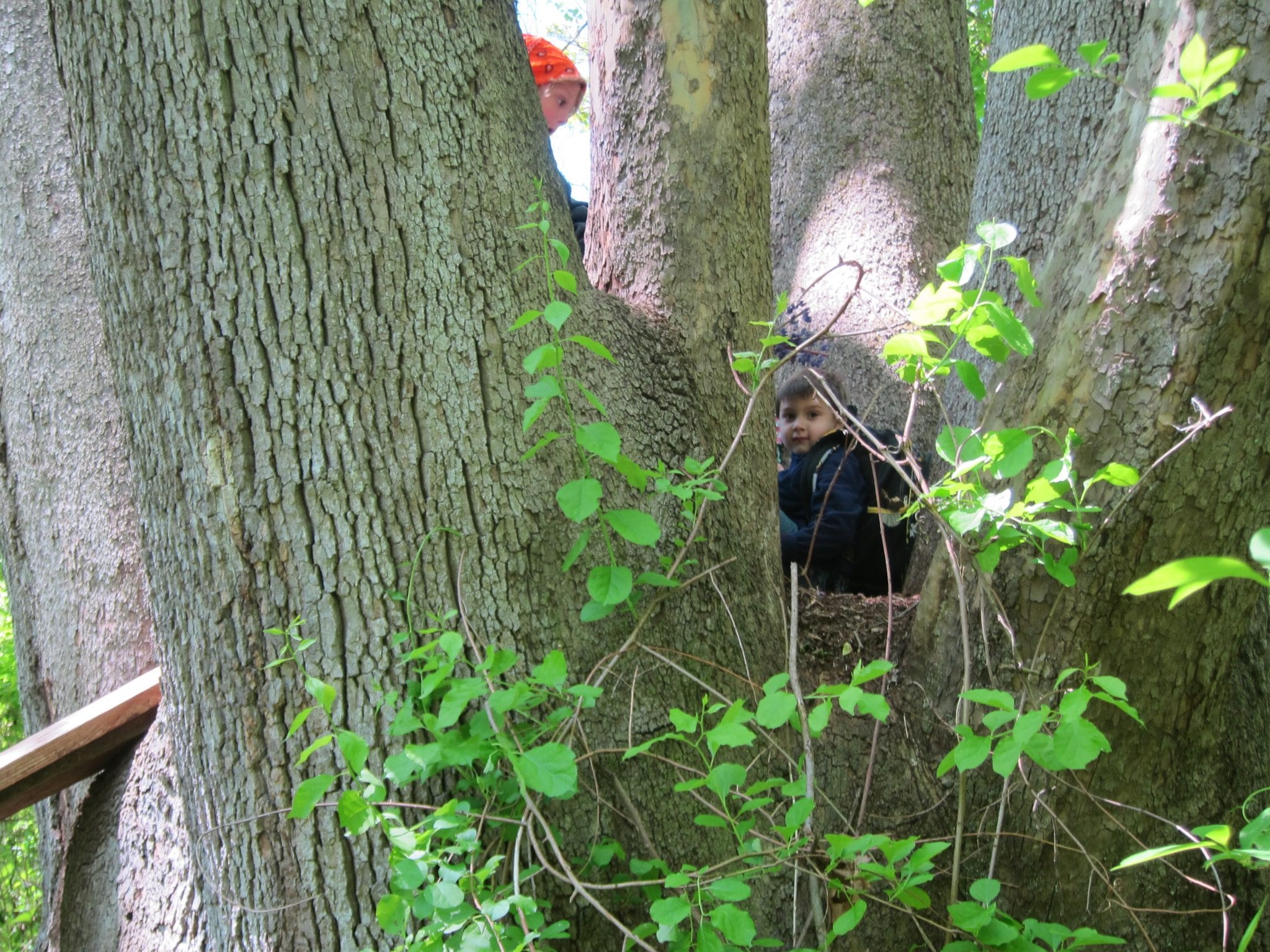 We then learned of the Legend of the Seven Trunked Tree! Legend has it, that if one cuts through a special spot near the meadow, they can enter the seven trunked tree and magically appear on Bauer Preserve’s property. We had to do a bit of bushwhacking, but lo and behold! We found the seven trunked tree! The class even wrote a story about the journey:
