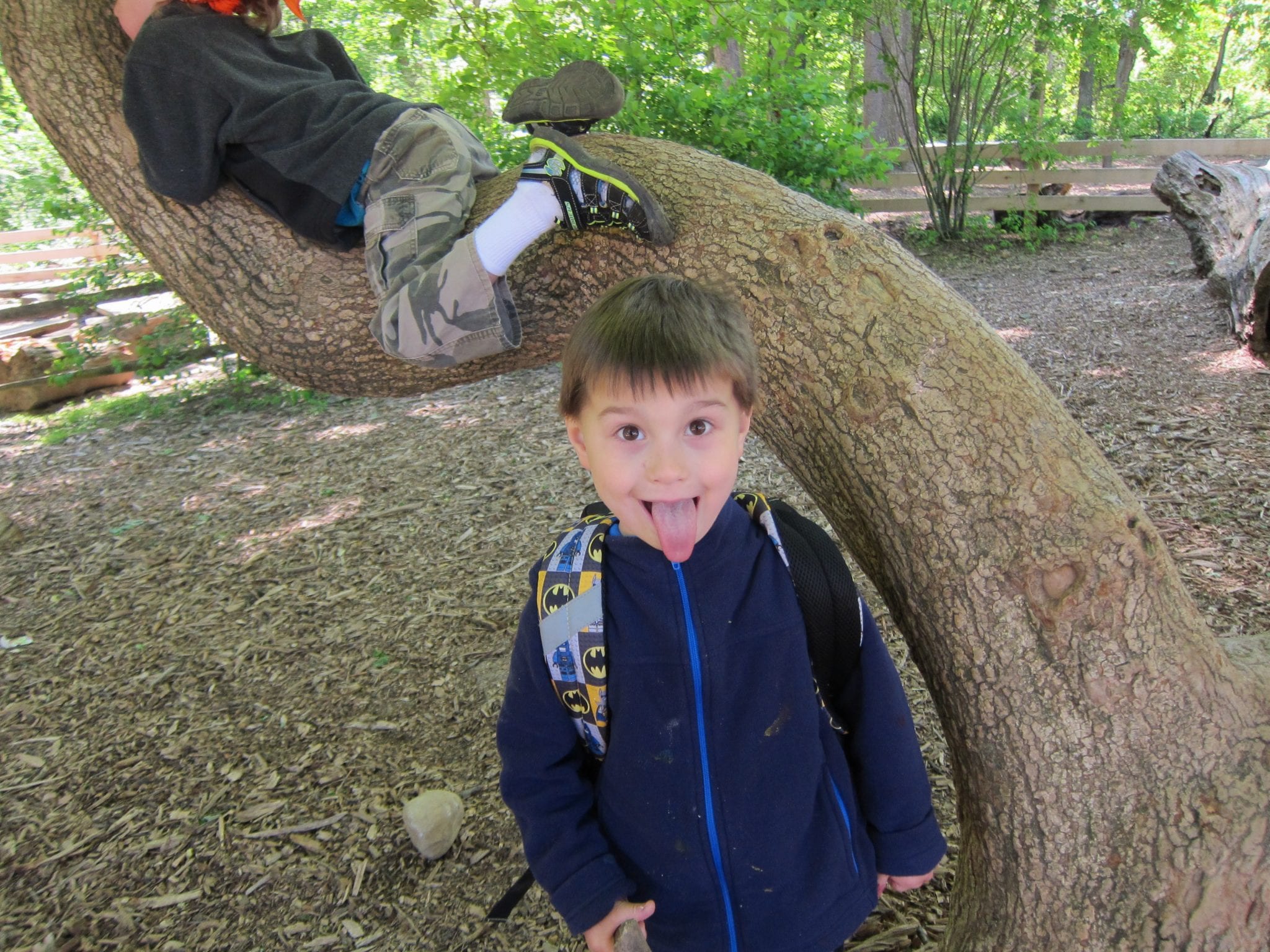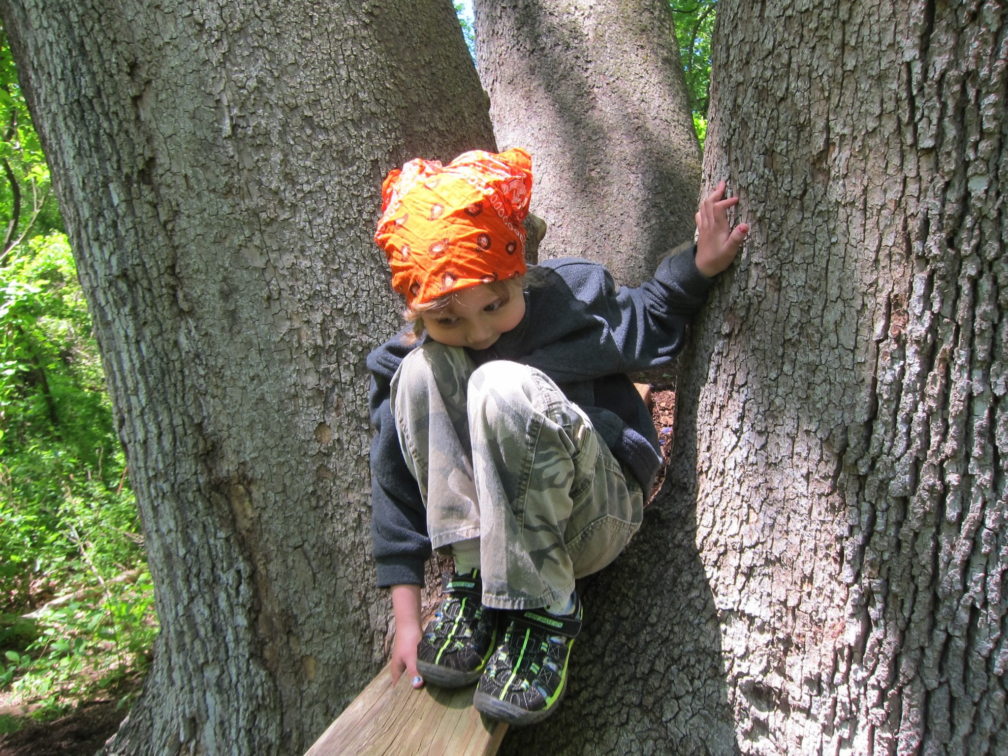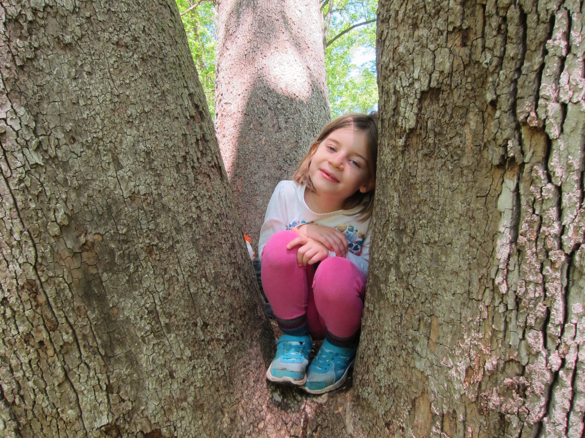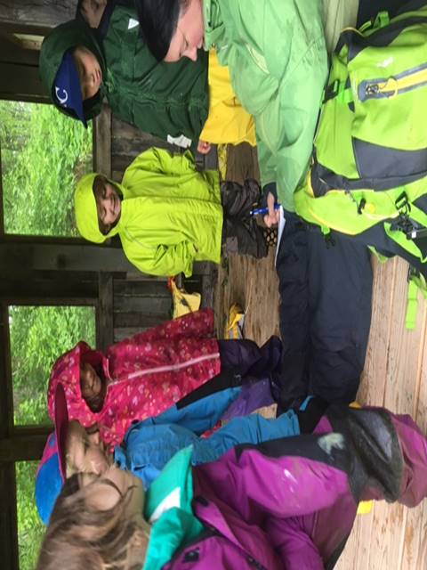 We then learned of the Legend of the Seven Trunked Tree! Legend has it, that if one cuts through a special spot near the meadow, they can enter the seven trunked tree and magically appear on Bauer Preserve’s property. We had to do a bit of bushwhacking, but lo and behold! We found the seven trunked tree! The class even wrote a story about the journey: