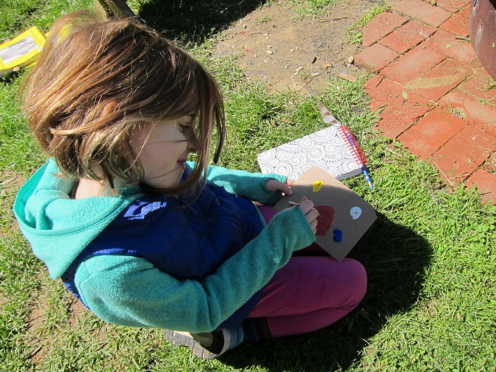 Our week started with a color hunt. We searched the amphitheater for each color. We soon realized that the amphitheater is a really difficult place to find colors other than green and brown. It took a stealthy eye to find them all… and with group effort, we did! Ms. Sophie had a really great idea that we should rival Crayola and come up with a new signature color. We each mixed our own special blend and came up with our own special color. It was a very relaxing experience!