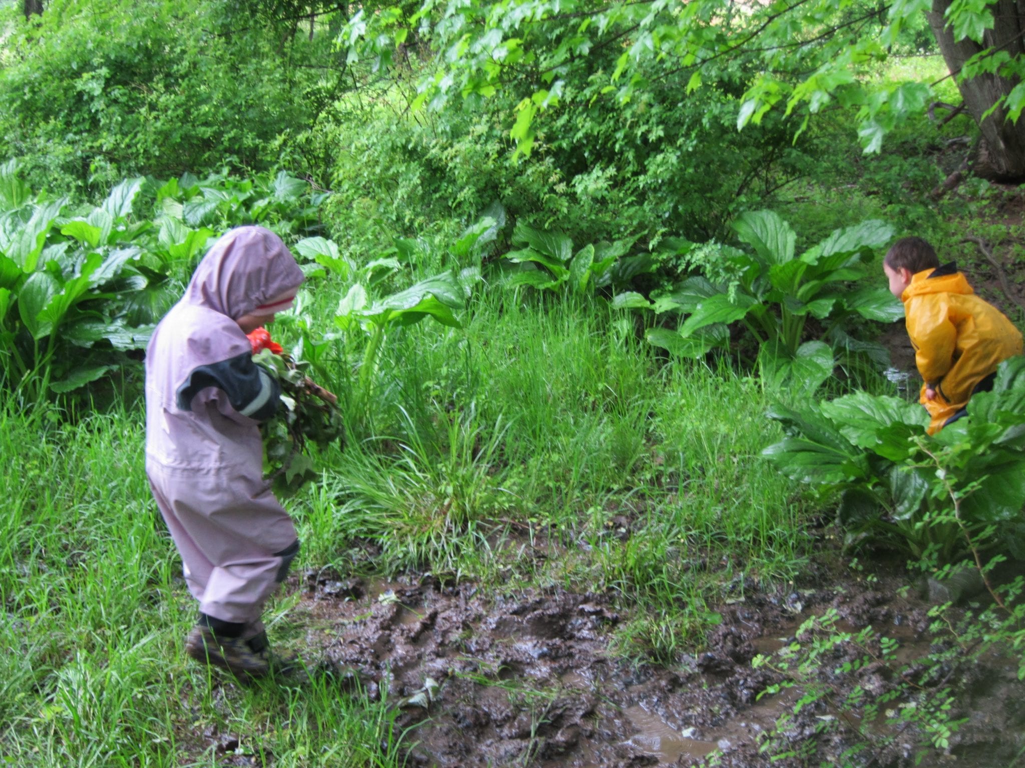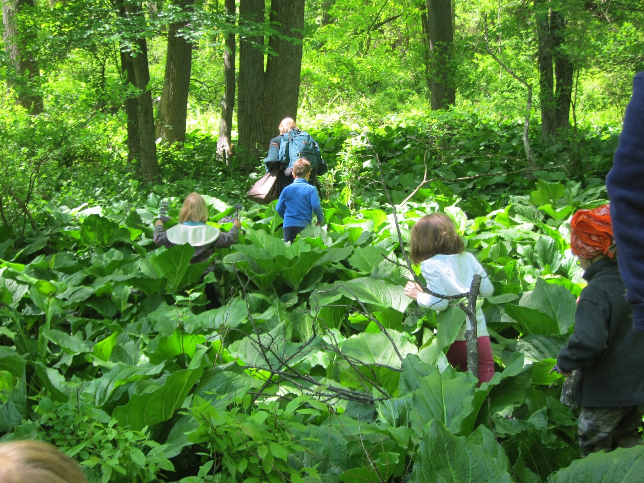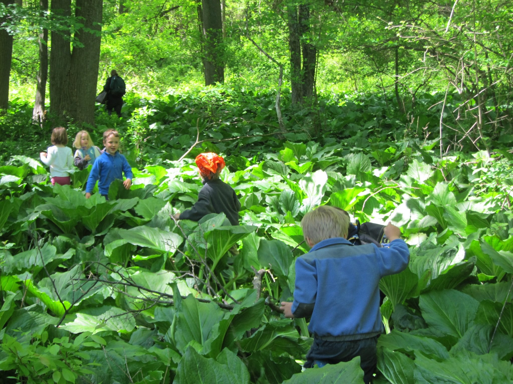 Through the stream and into the skunk cabbage