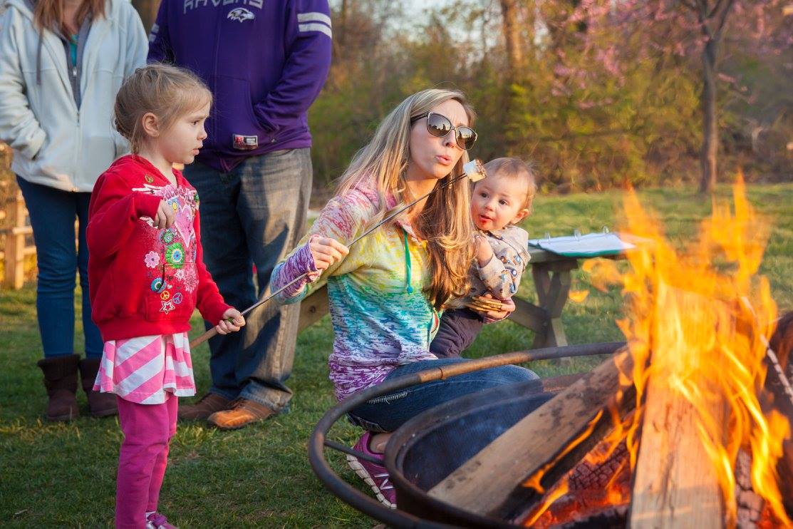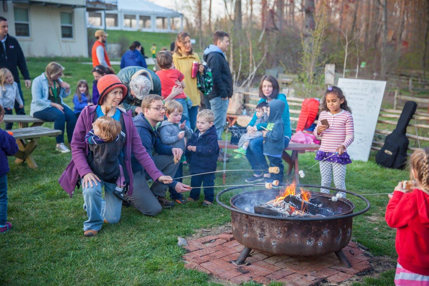 - Families and teachers gather around the campfire for songs and smores.