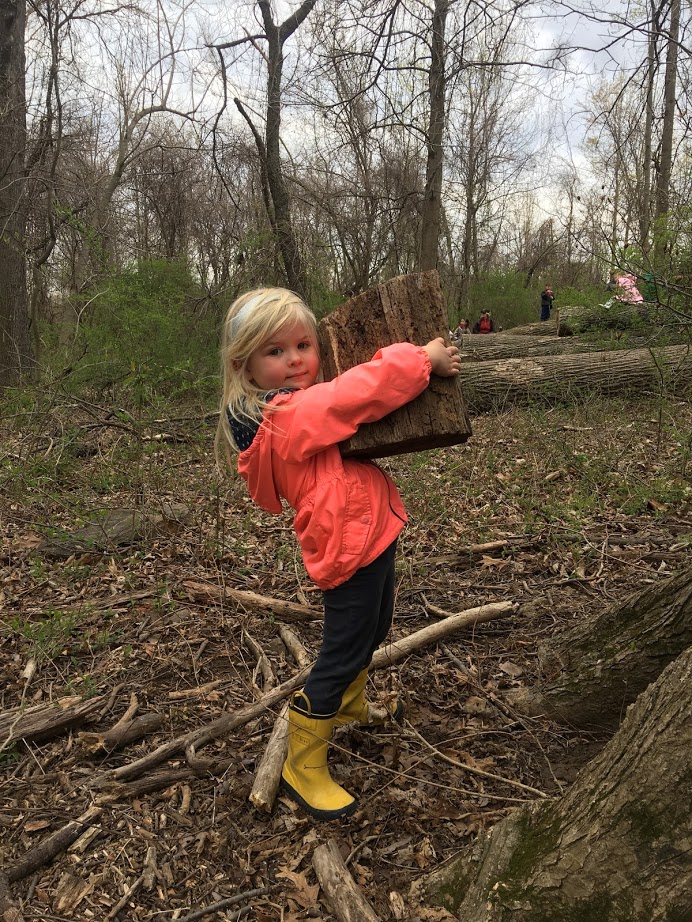 - Nature Discoveries Galore: A blossoming tulip poplar branch, a heavy log, and a green leaf being put in a pocket