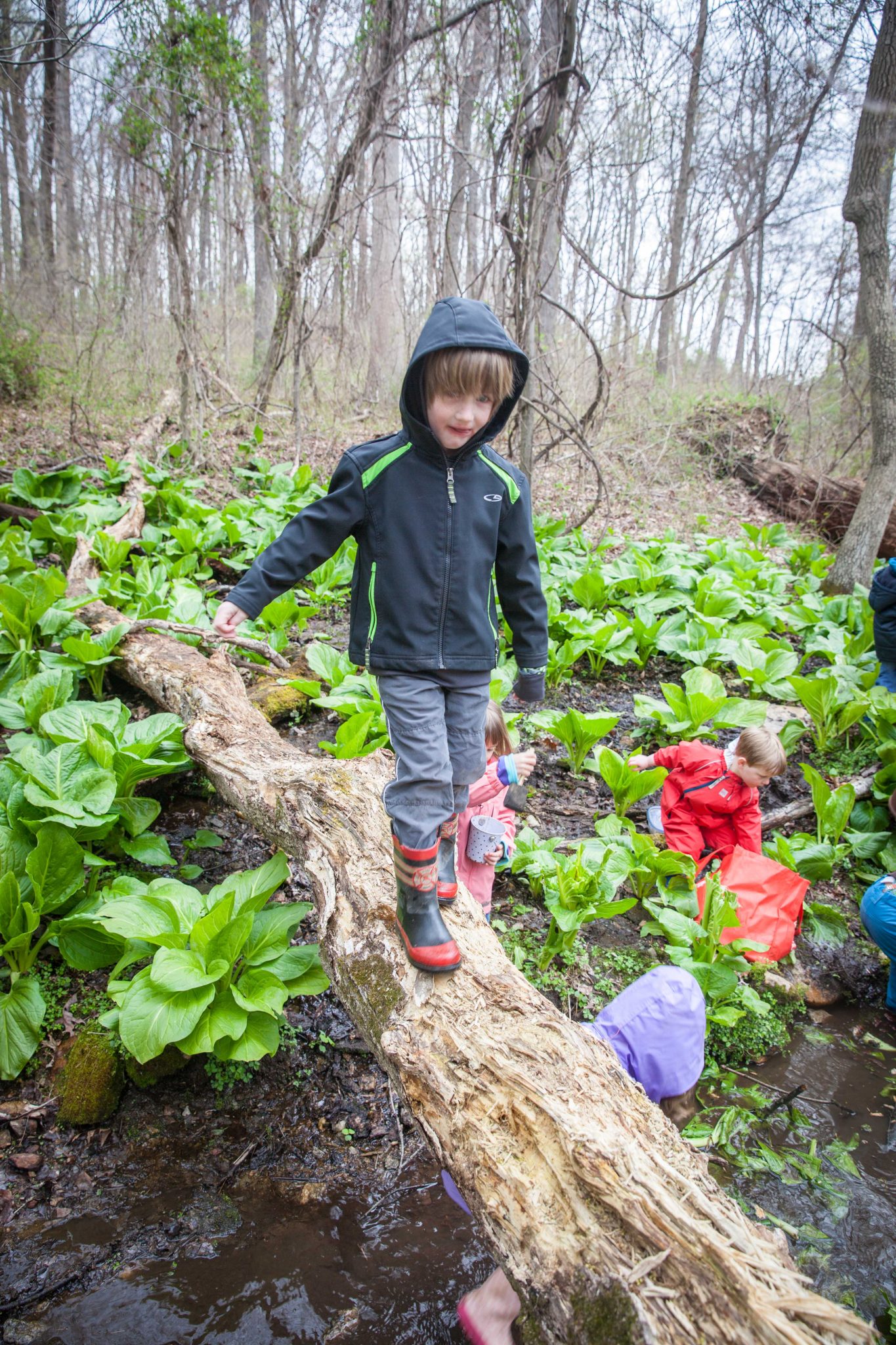 -The Chipmunks enjoyed visiting a spot they named, “Skunk Cabbage Valley!” They used sticks to make musical beats and used tools to explore the stream.