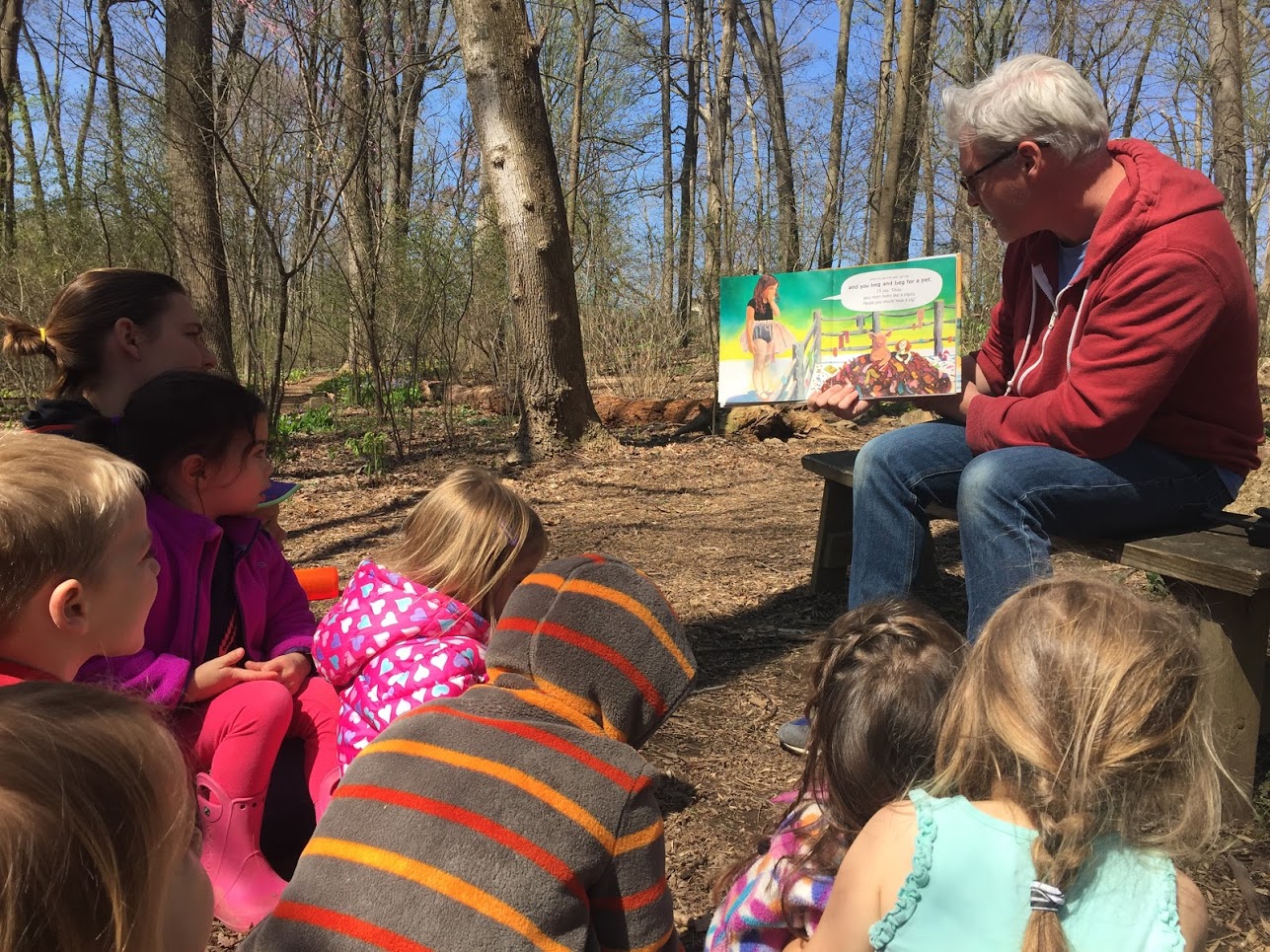 Nature Preschool celebrated The Week of the Young Child! Each day had its own unique theme: Music Monday, Taco Tuesday, Wacky Wednesday, Throwback Thursday and Freestyle Friday! Out on the trails we saw blooming flowers, butterflies and sunny spring skies! We ended our week long celebration in song at our annual Spring Sing. Friday evening families and teachers came around the campfire to sing under the stars!