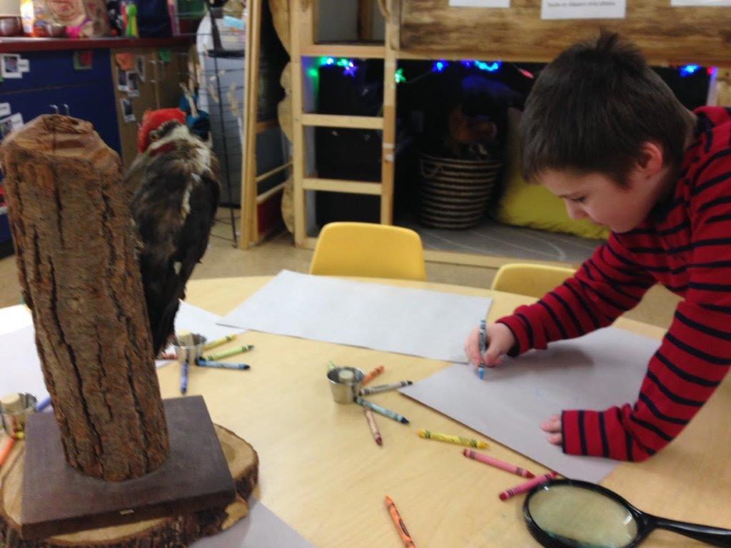 - An art provocation involving a woodpecker taxidermy and crayons.