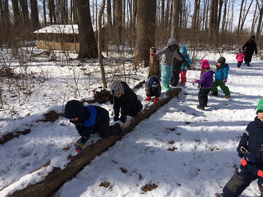 - Climbing on logs helps promote confidence, balance and muscle strength! Plus it is so much fun!
