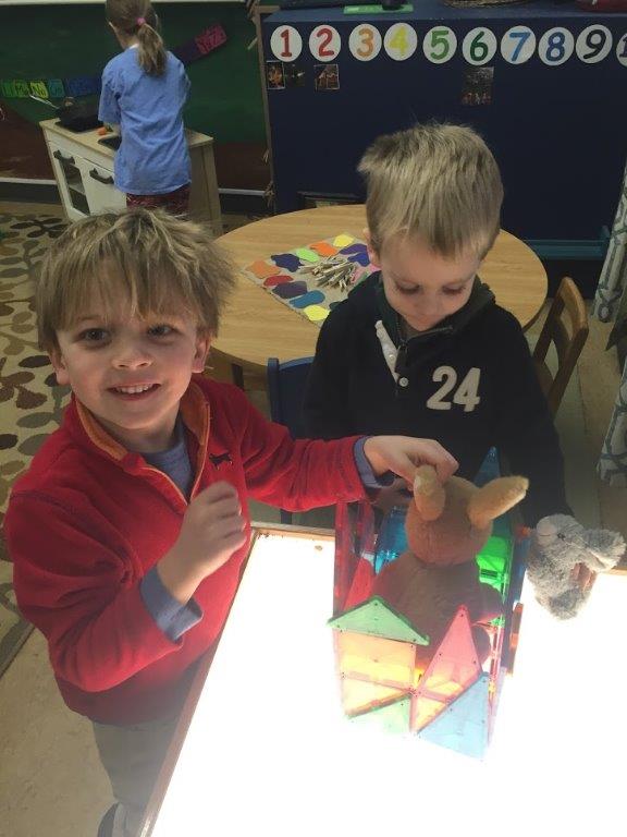 - Play-dough provocation with tools and various small world toys for open ended play.