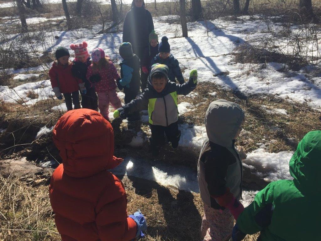 - Exploring the winter woods! We stopped to listen to the birds. They are especially active as the temperature starts to rise.